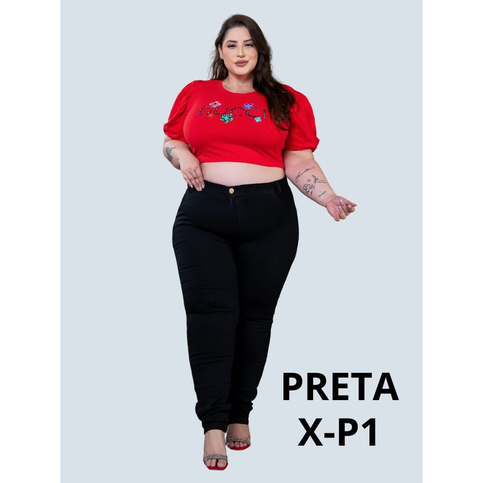 Calça Jeans Feminino Plus Size Cintura Alta Com Lycra Strech Elastano Premium- Curve