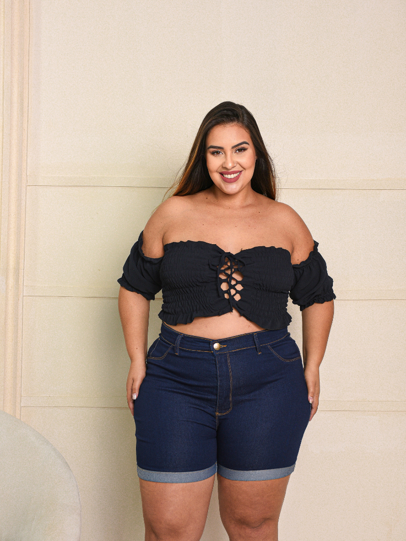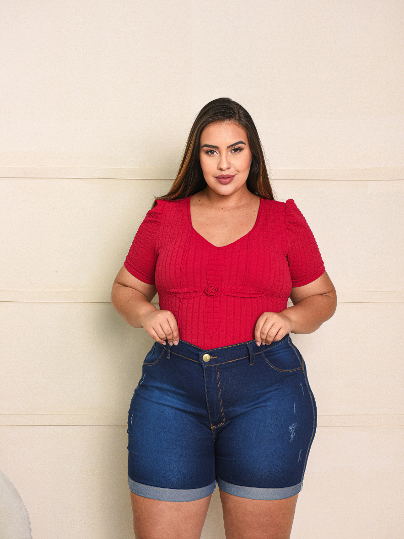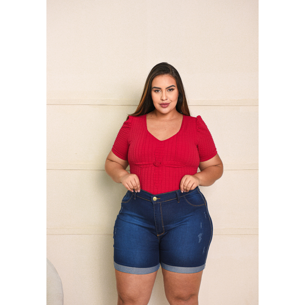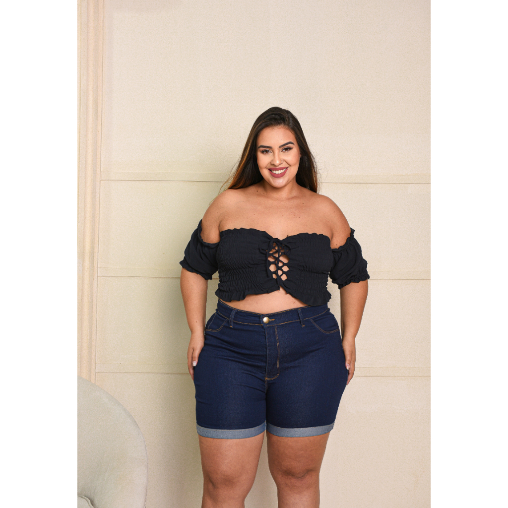 Bermuda Meia Coxa jeans feminina plus size elastano premium cintura alta lycra strech curve