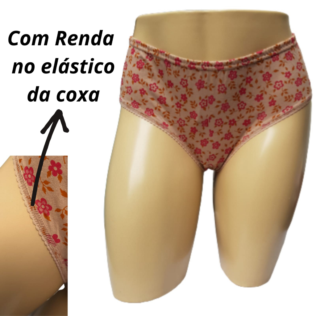 Kit 6 Calçola Calcinha Senhora Gestante Pós Parto 100% Algodão Confortável Estampada