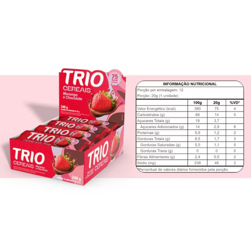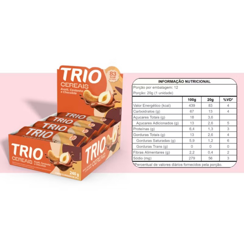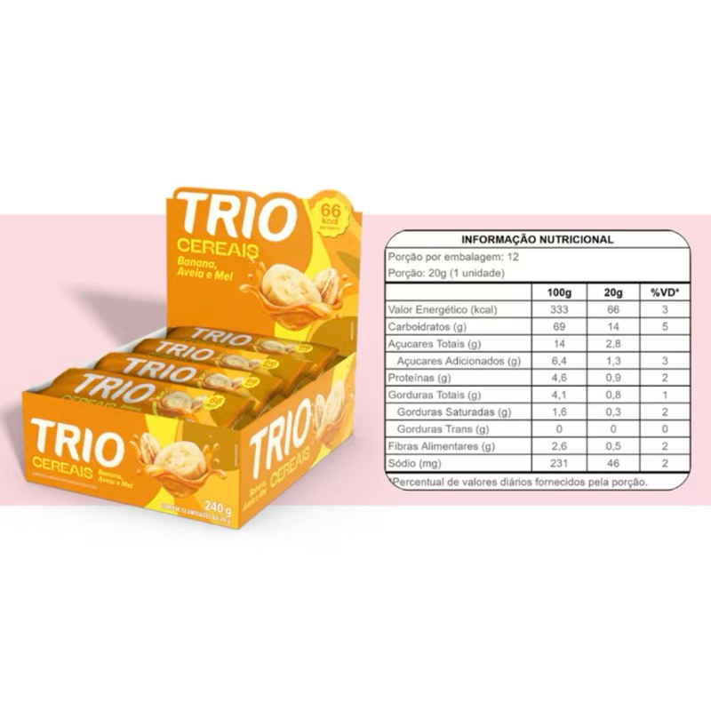 Barra de cereais Trio kit com 24 ou 48 unidades - Escolha seu sabor