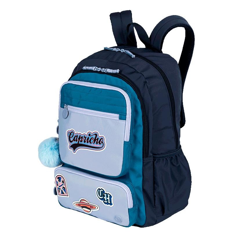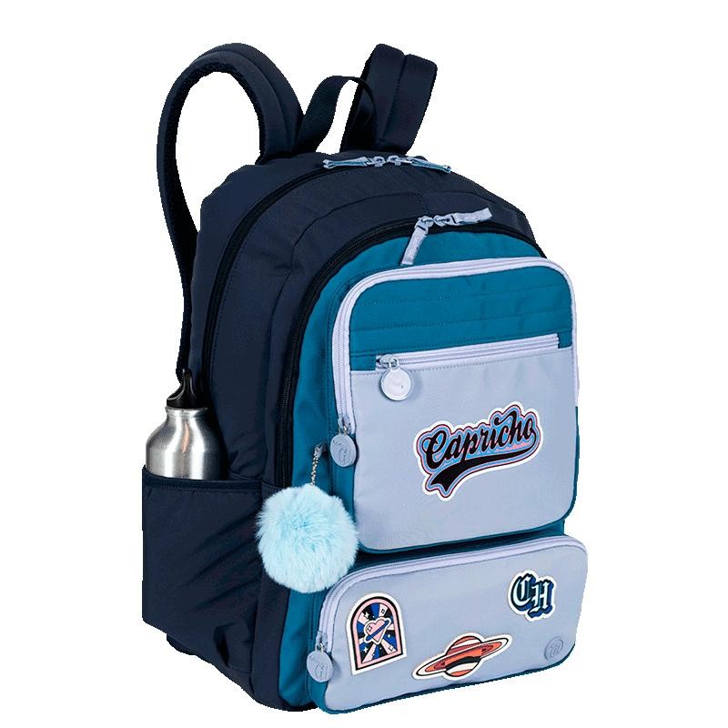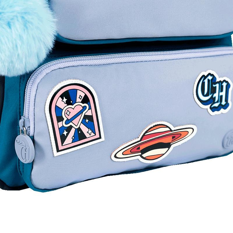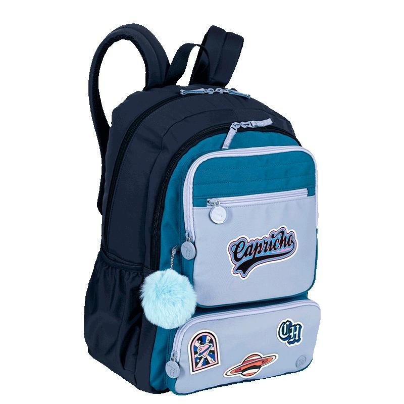 Mochila 2 Compartimentos Capricho Class Cosmic Patches - Azul