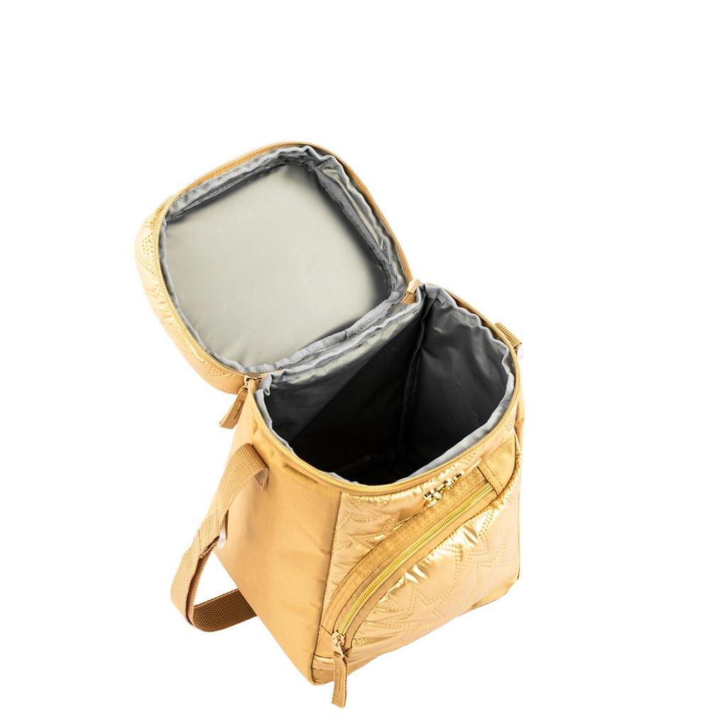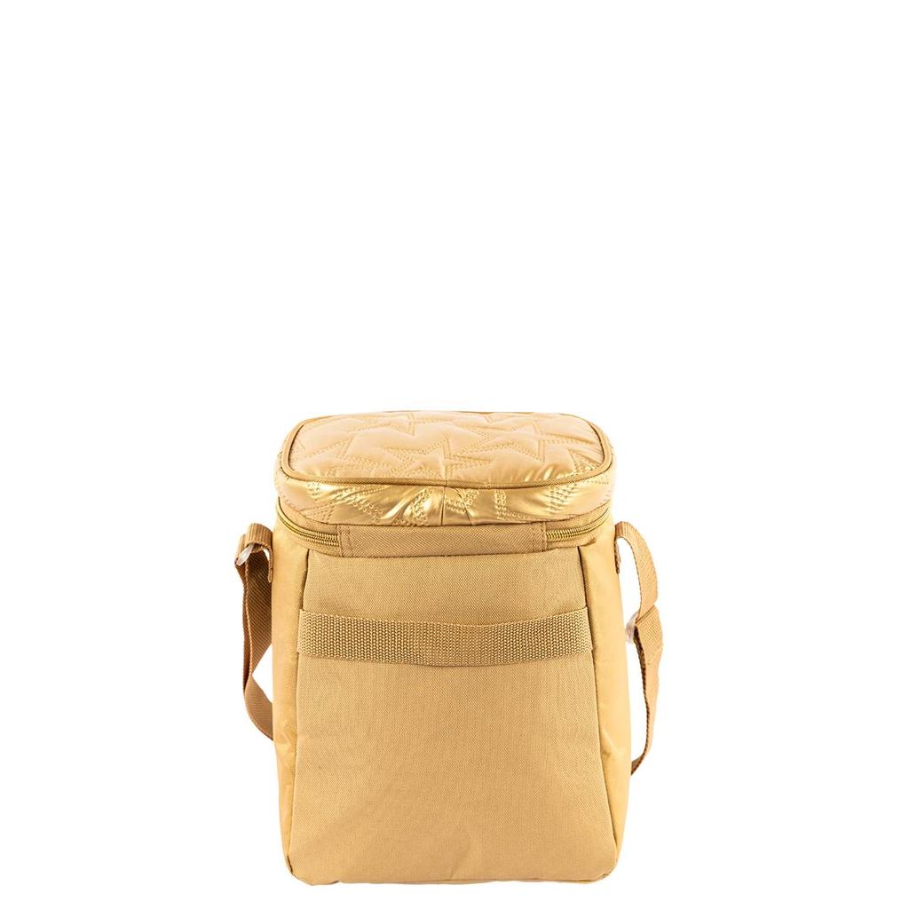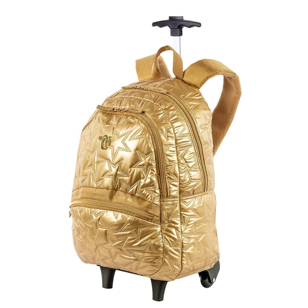 Kit Mochila Carrinho 2 Compartimentos com Lancheira Grande Capricho Estrelas - Dourado