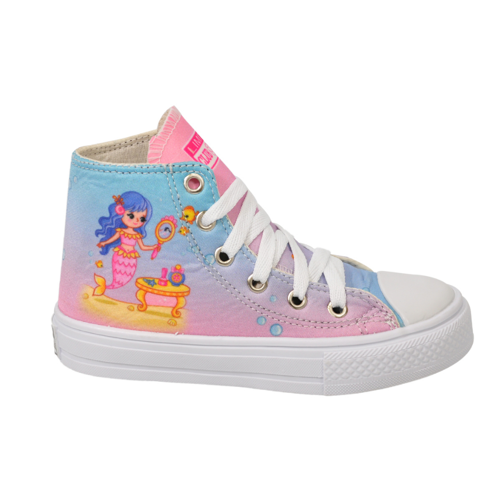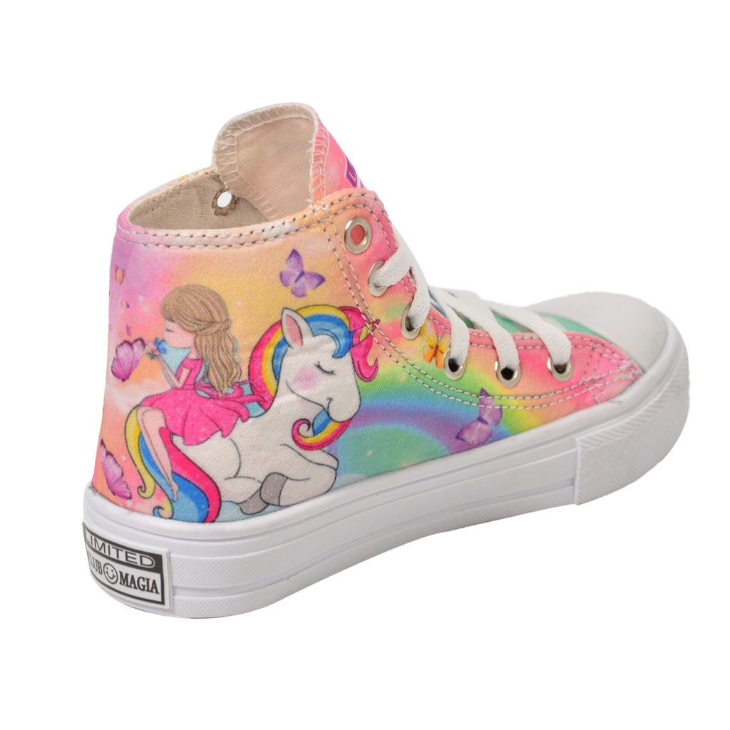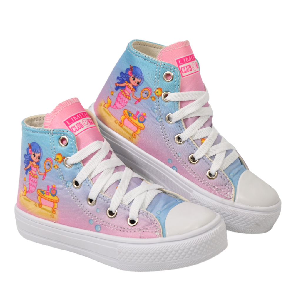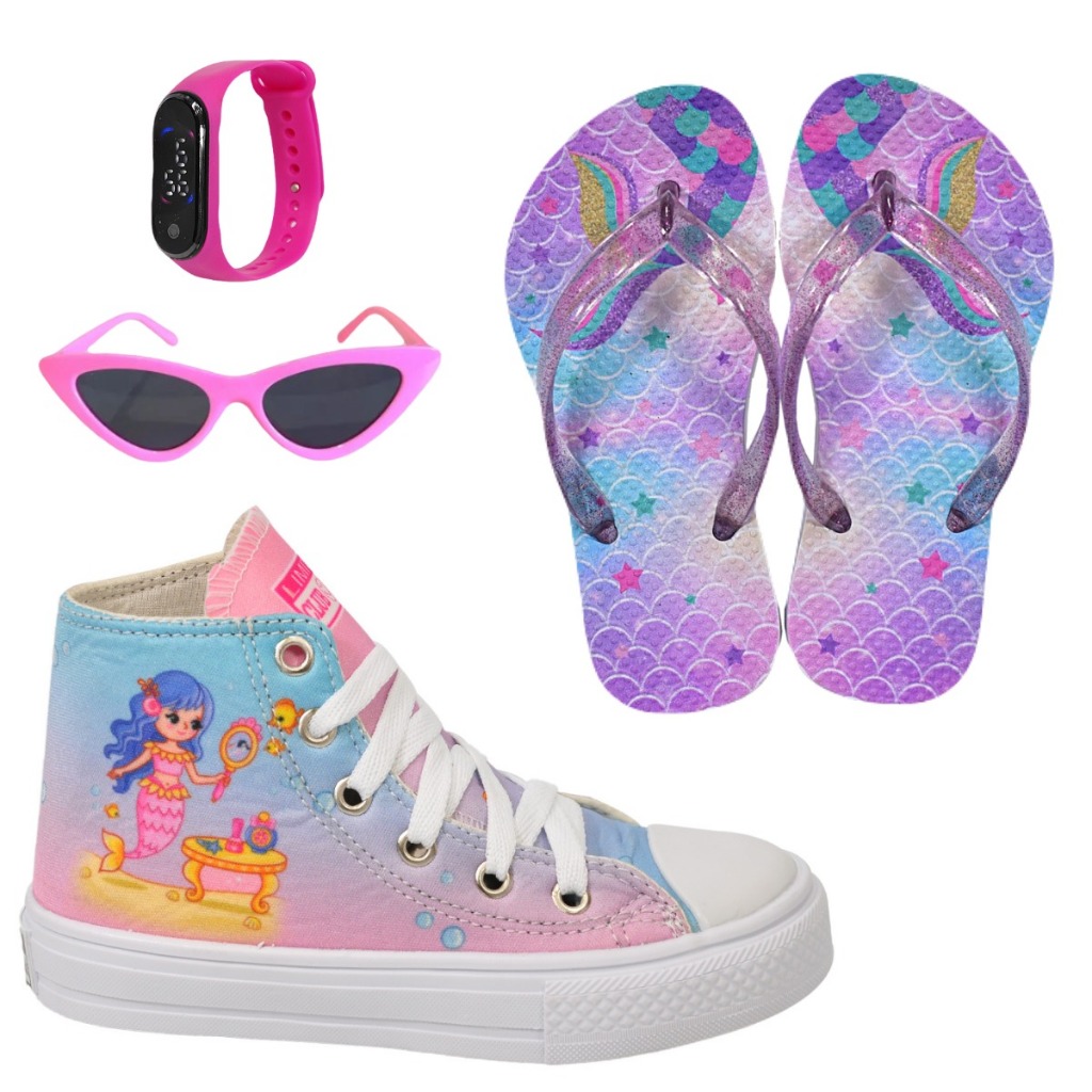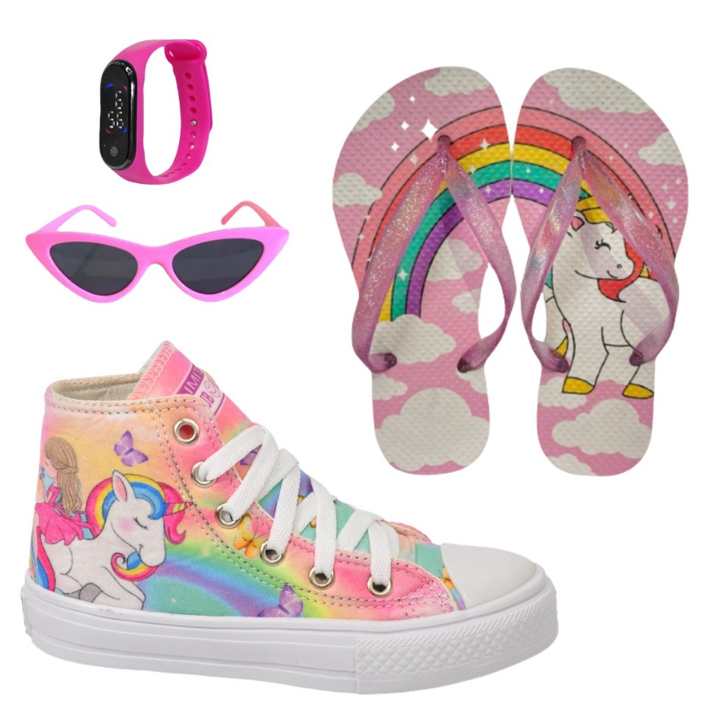 Tênis Infantil Feminino Unicórnio Sereia Cano Alto + Chinelo Óculos Relógio