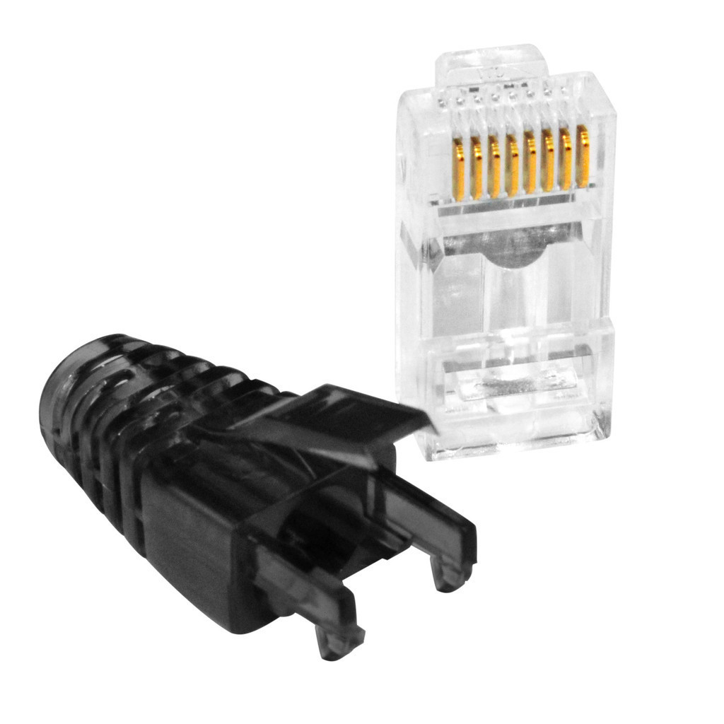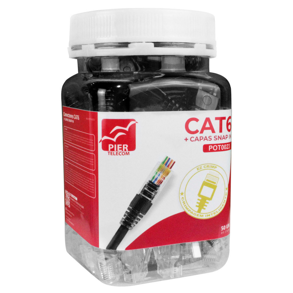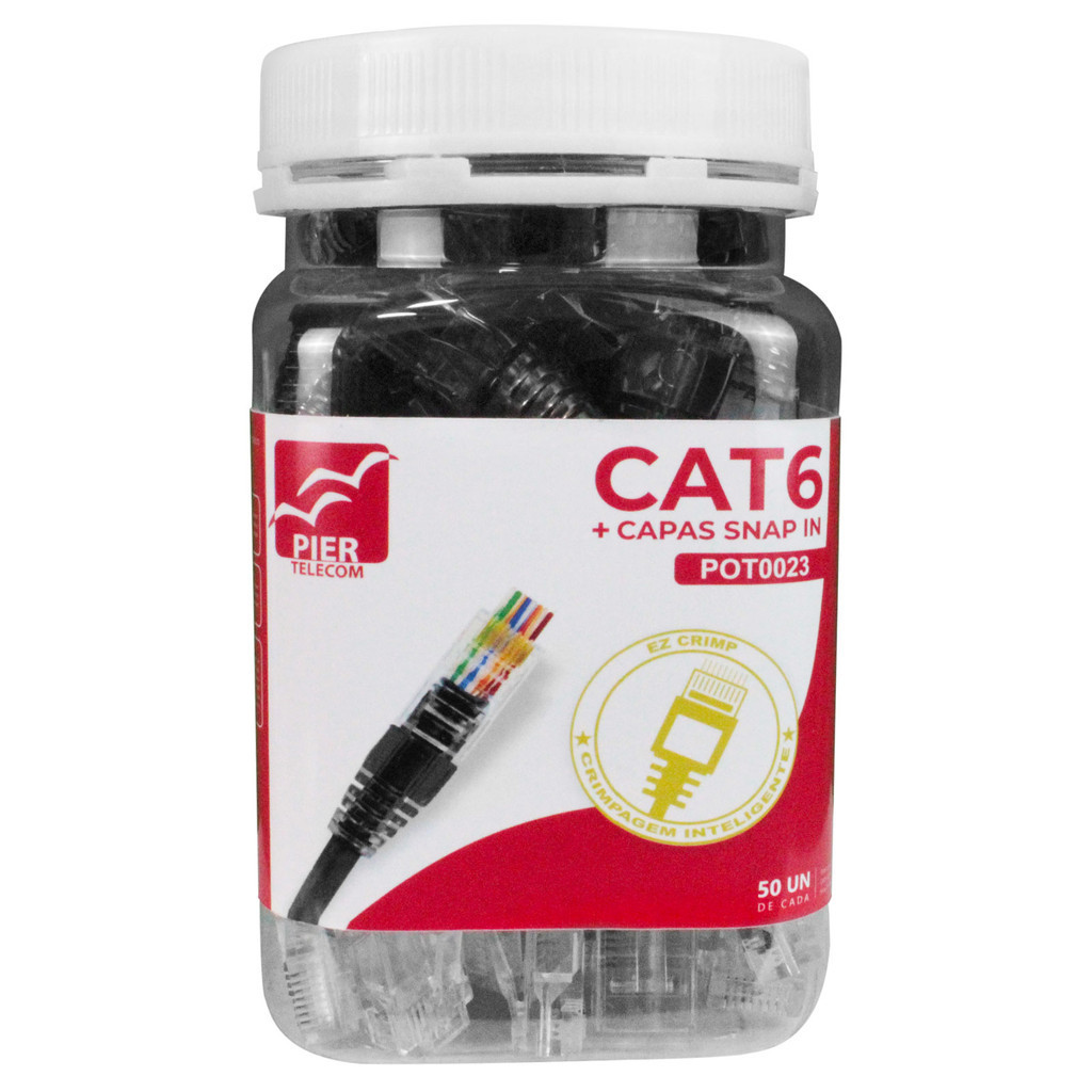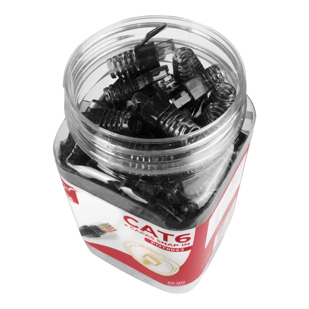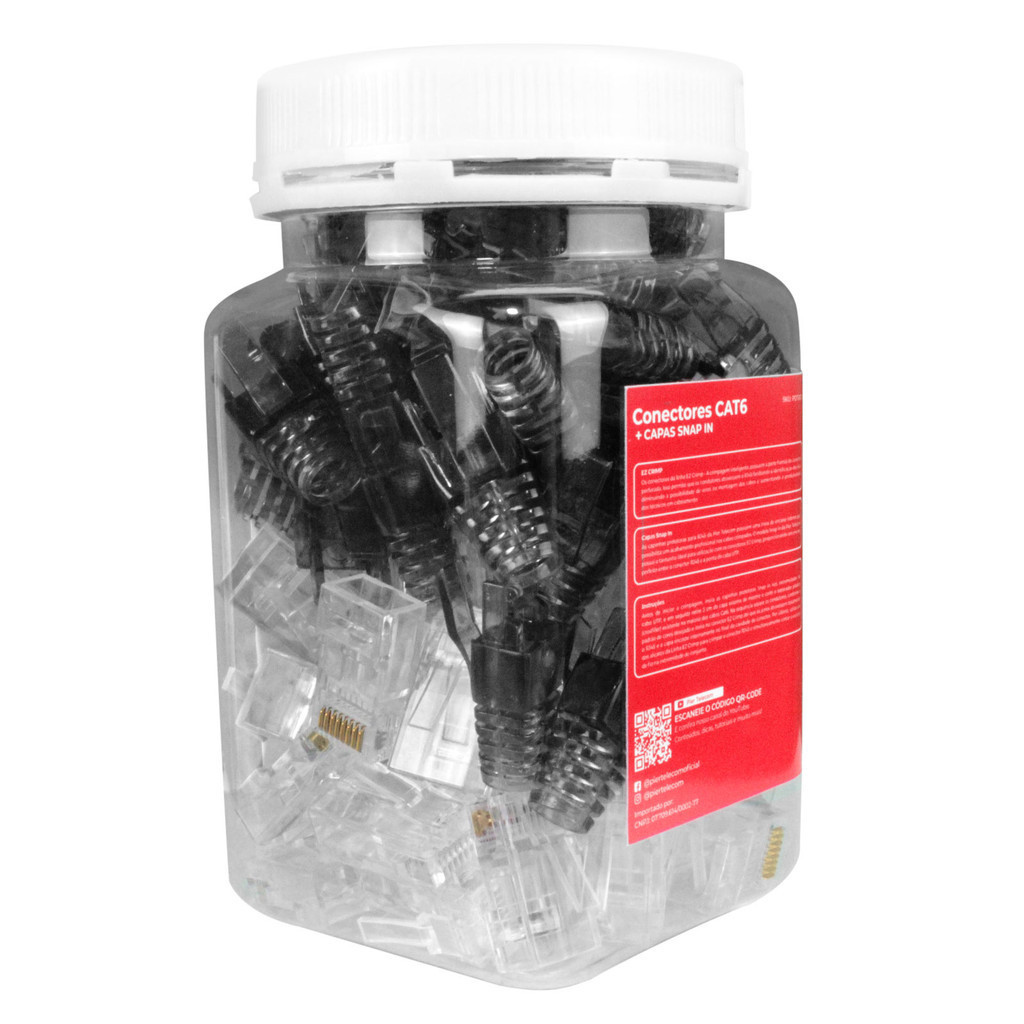 Pote Conector Macho RJ45 Cat6 de Passagem EZ Crimp 50 Peças + Capa RJ45 Snap in Preta 50 Peças