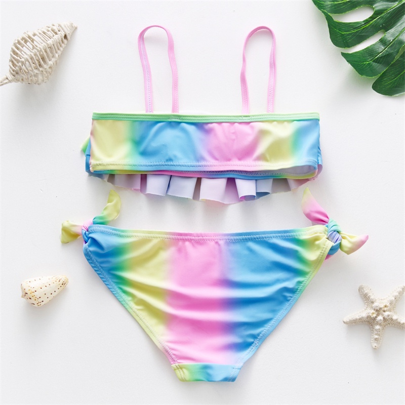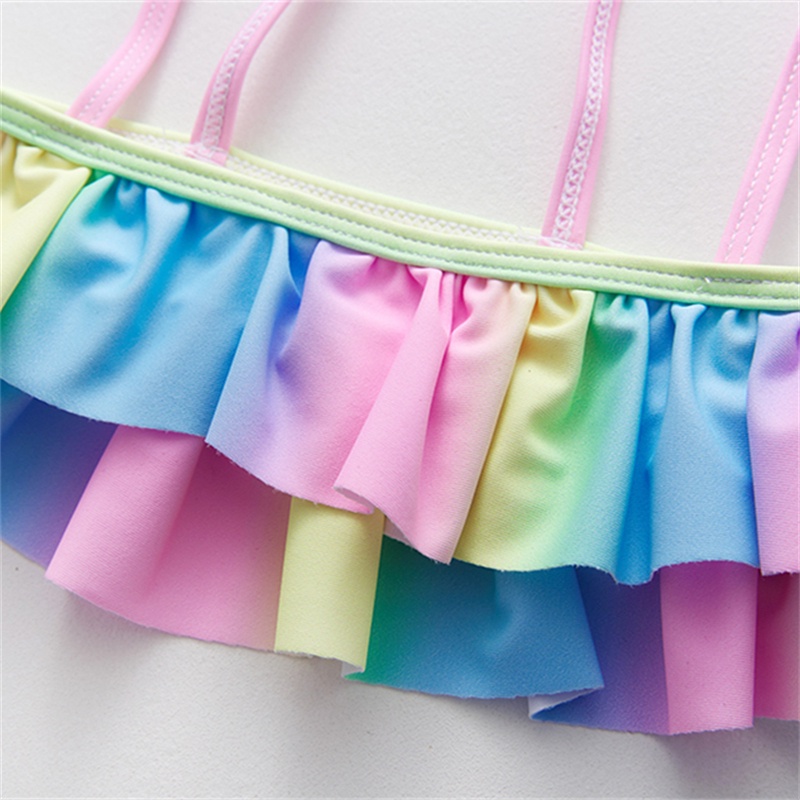 Biquíni Maiô Infantil Menina com Arco-Íris Babado 2022 Verão Moda Biquini Para Meninas 3-12 Anos