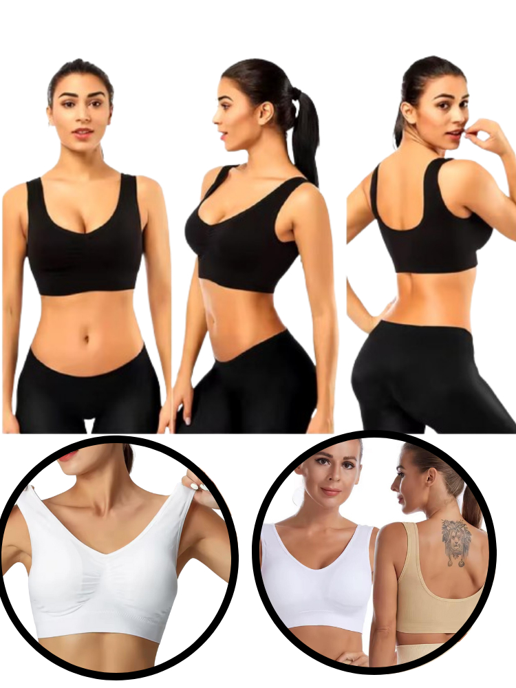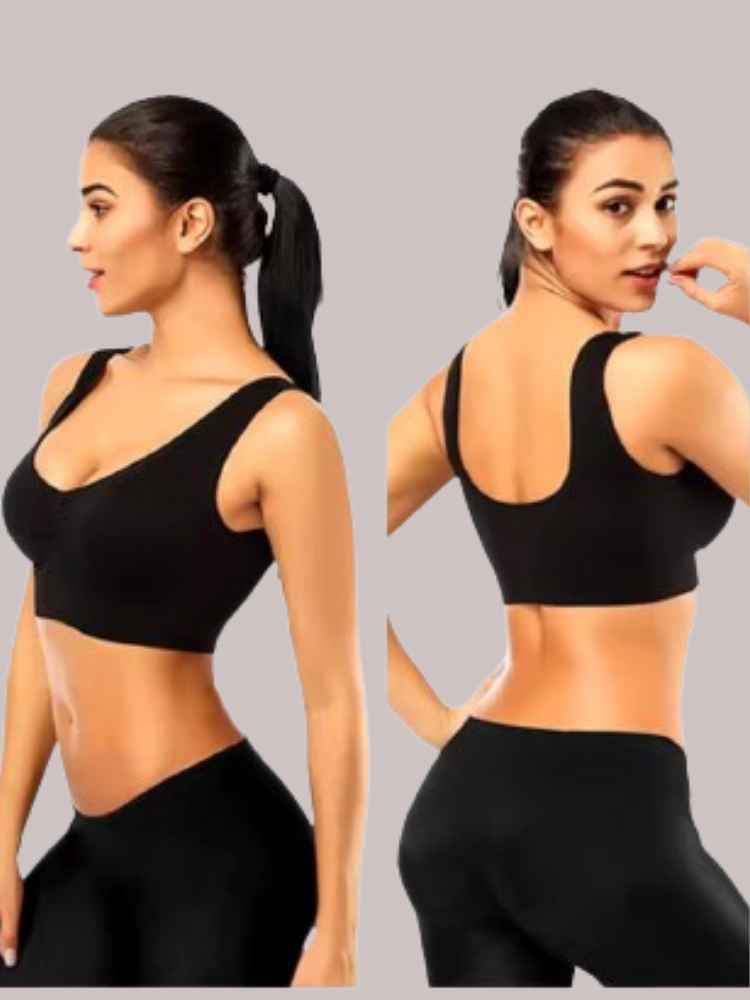 Sutiã com Bojo Top Corte a Laser Sem Costura Tecido Confortável e Alça Larga Regata