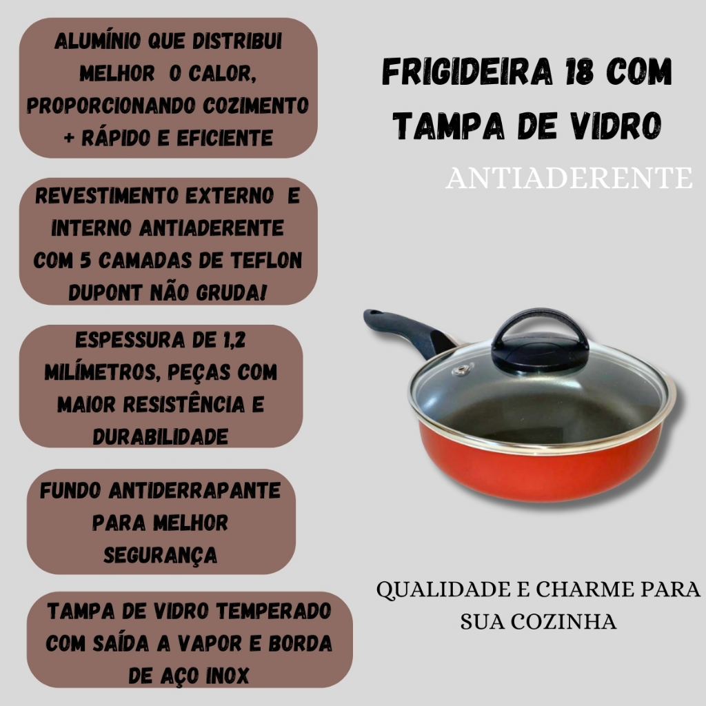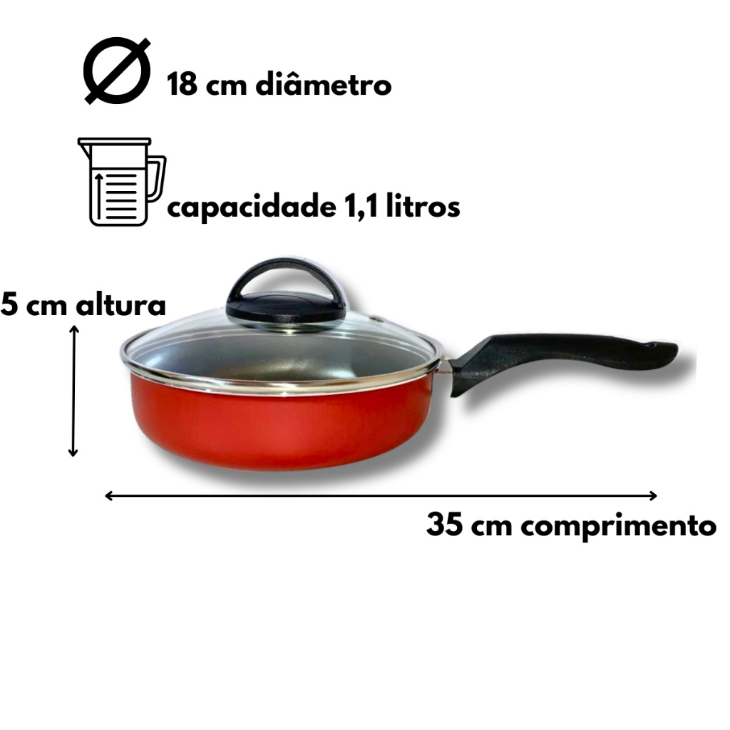 Frigideira Alta Funda 18 Cm Antiaderente C/ Tampa Vidro