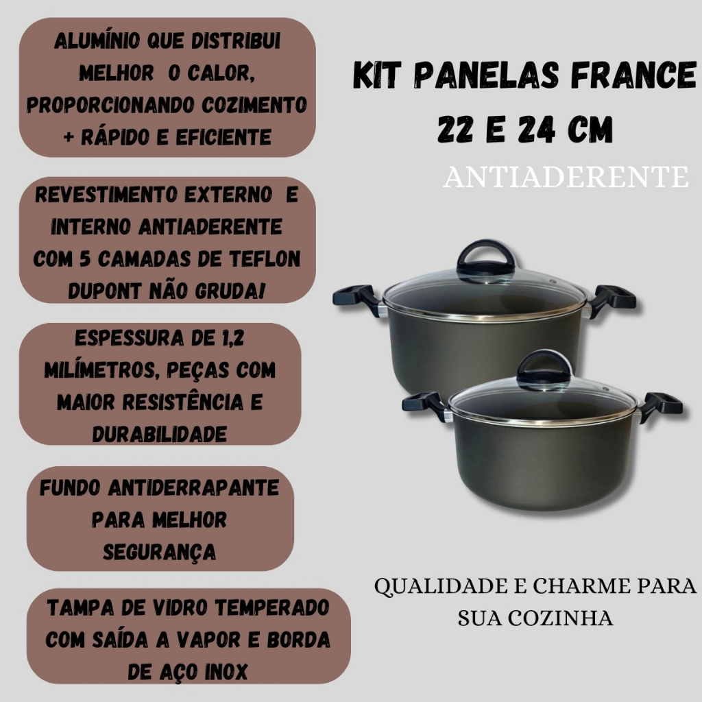 Kit Panelas Panela France Tamanho Grande Nº22 E Nº24 Antiaderente