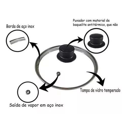 Tampa De Vidro Temperado Nº22 Panela, Frigideira E Caçarola