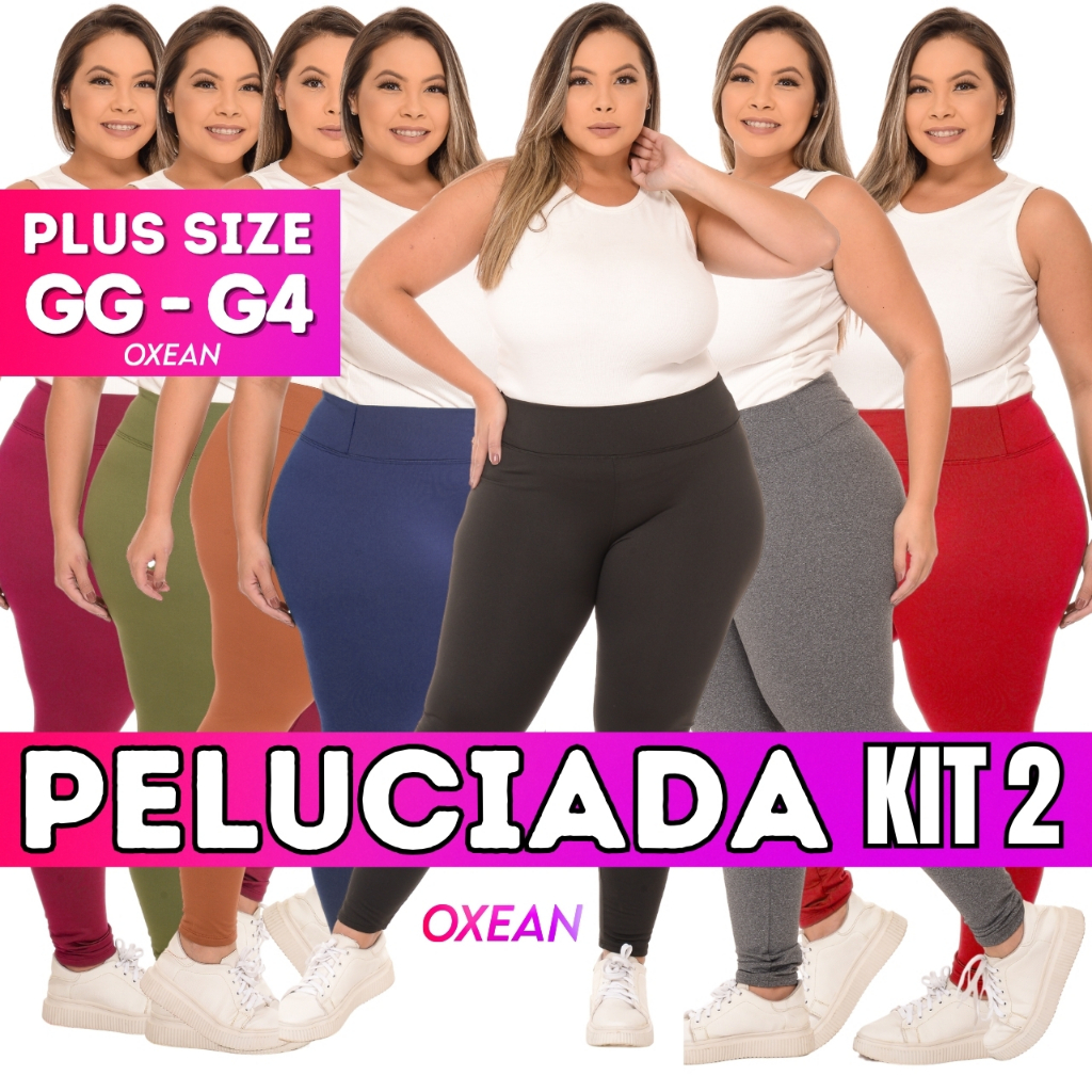 Kit 2 Calças Legging Flanelada Plus Size Grossa Leg Peluciada