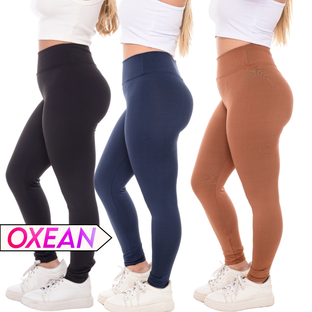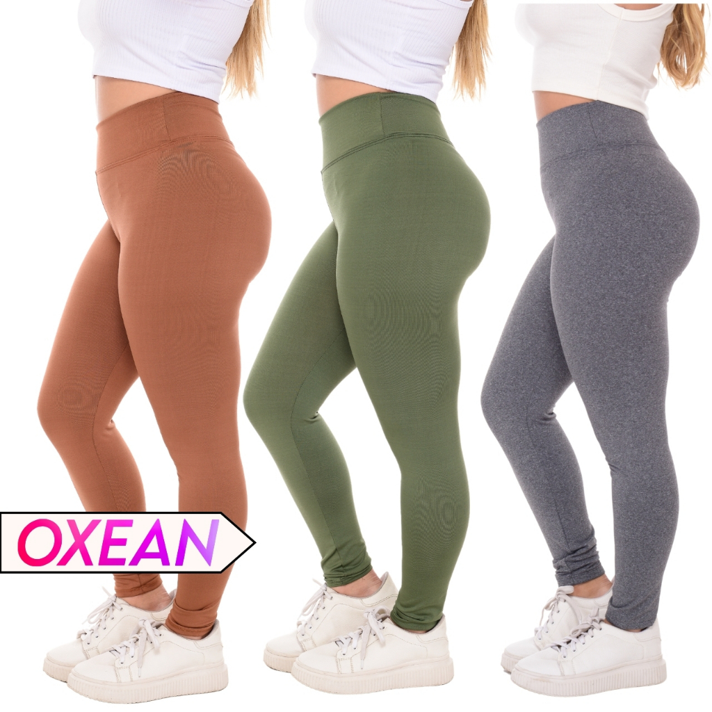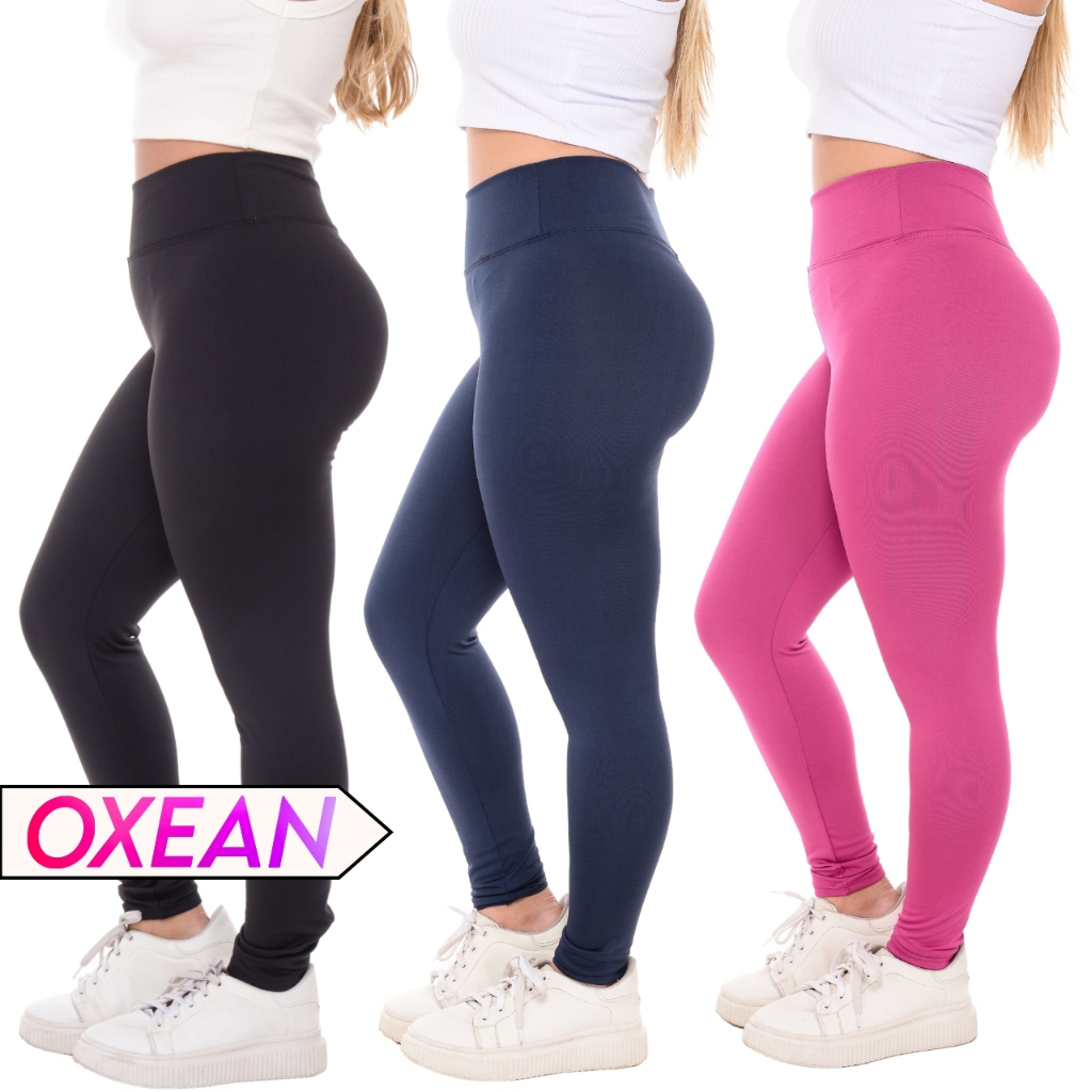 Kit C/ 03 Calça Legging Cintura Alta Leg Suplex Grossa Levanta Bumbum Zero Transparência