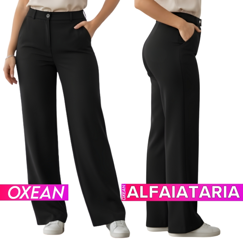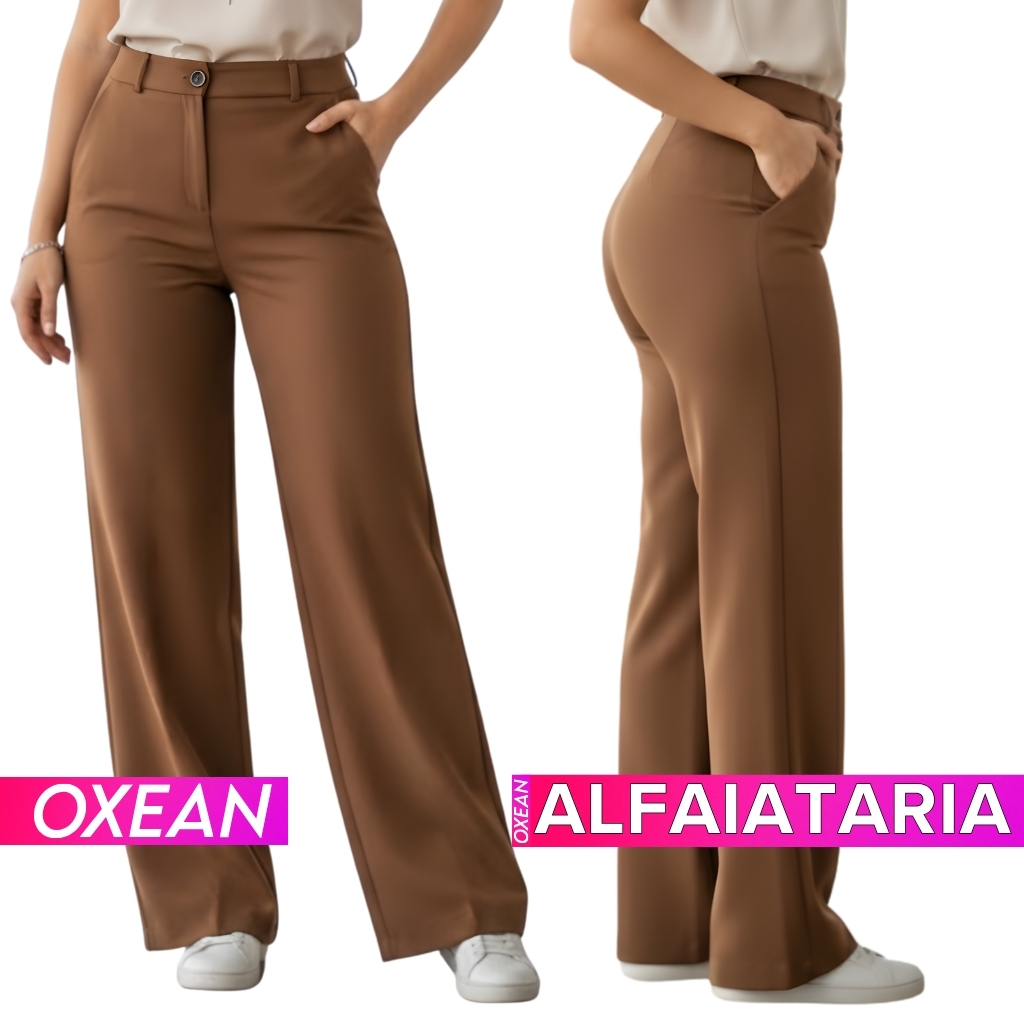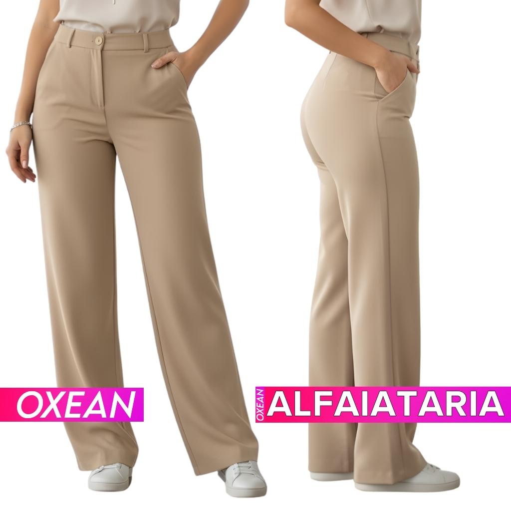 Calça Alfaiataria Feminina Wide Leg Cintura Alta Pantalona Com Bolso
