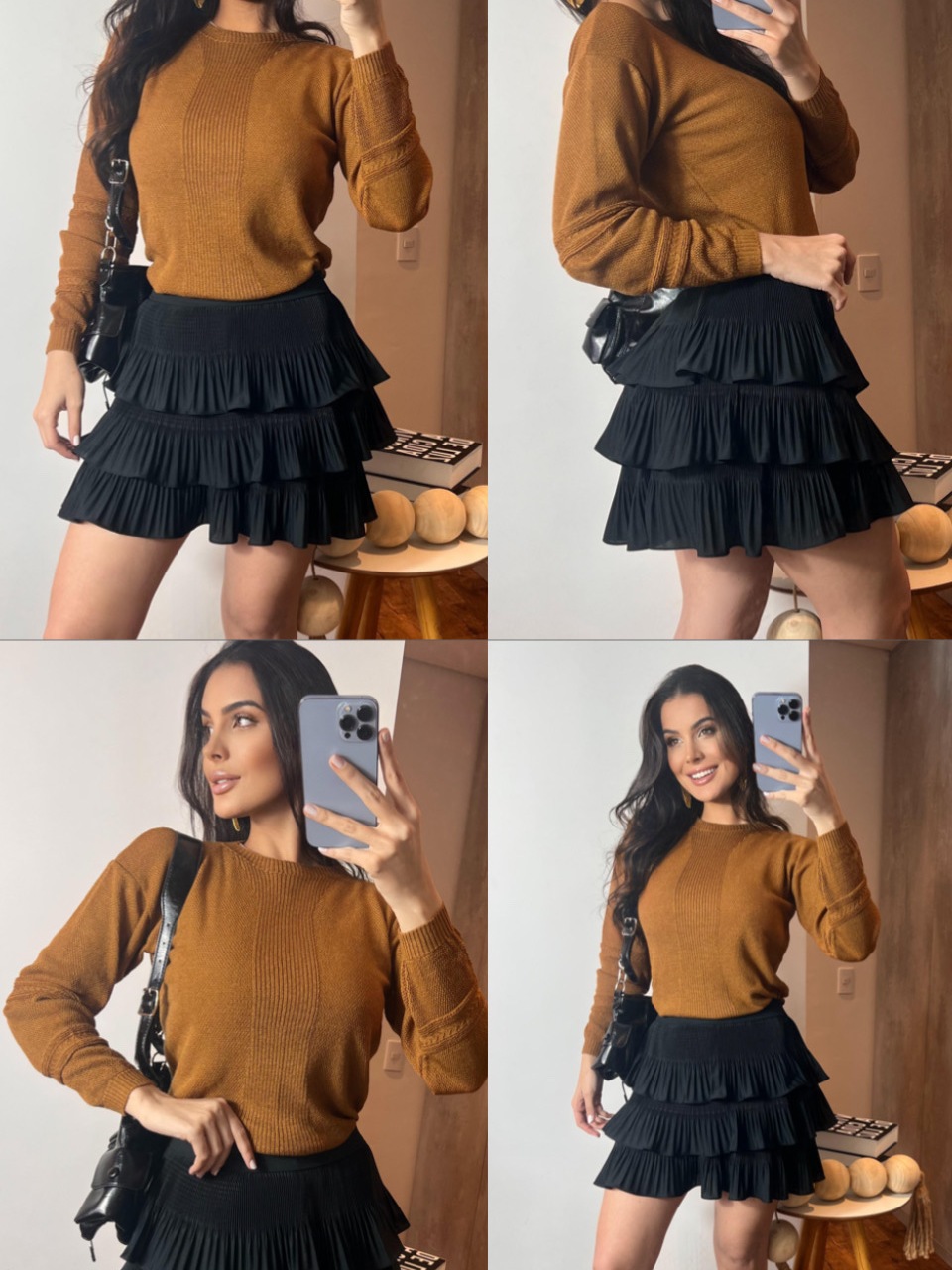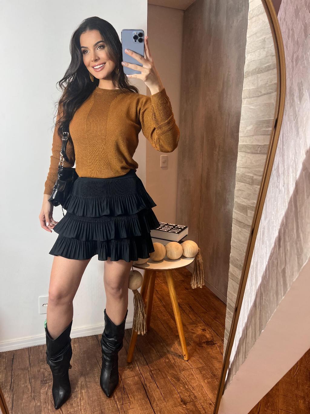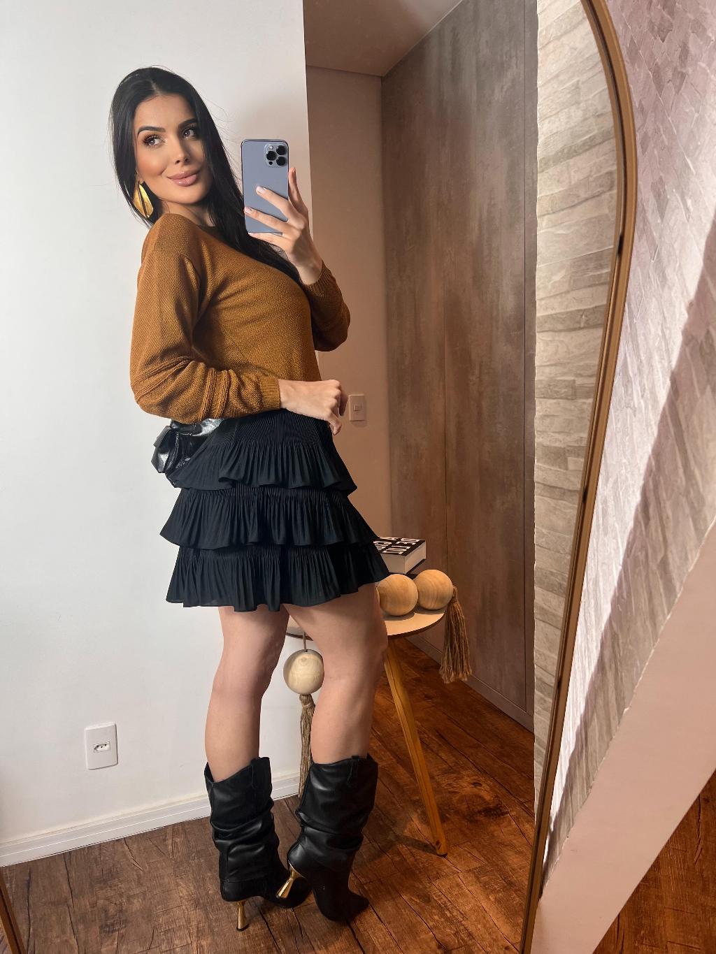 saia plisada 3 camadas curta Premium envio imediato boho chic tendencia 2025 festa balada