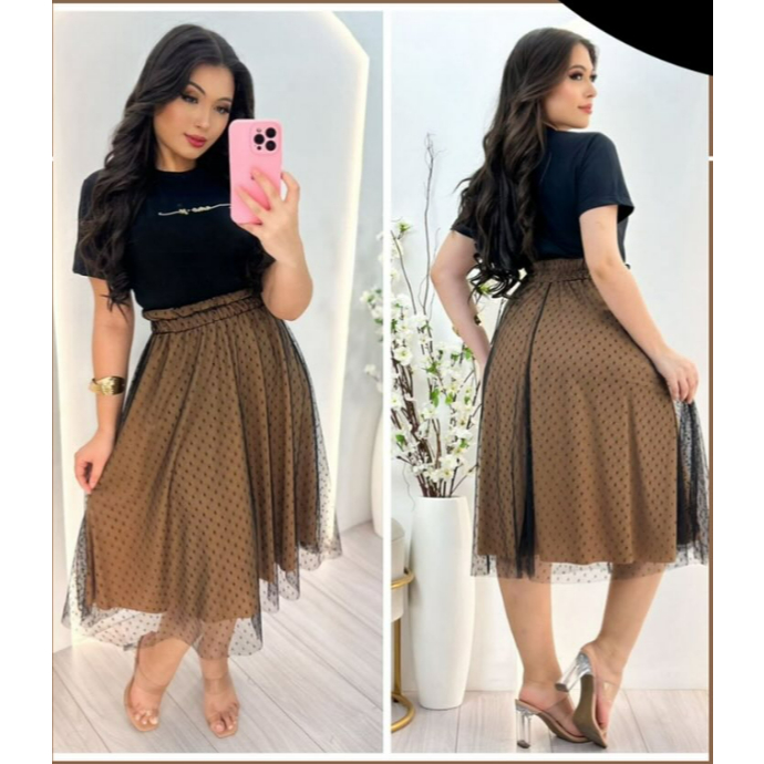 Saia Tule póa Forrada tendencia Moda evangélica Fardamento Festividade Congresso modesta