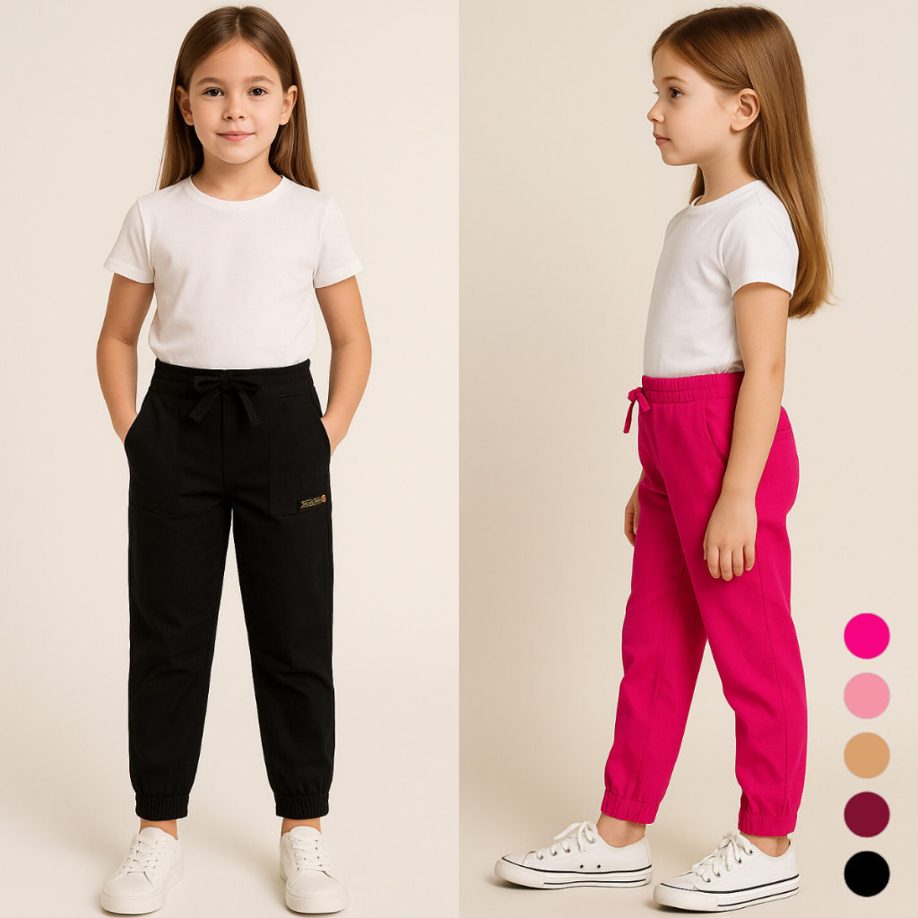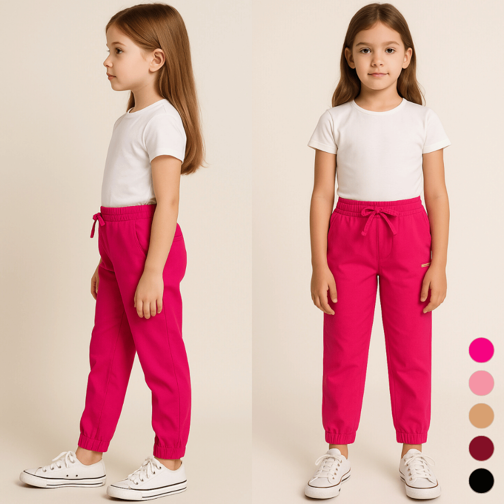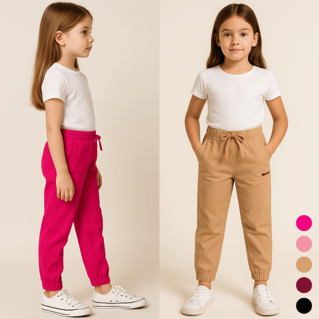Calça Infantil Menina Jogger Estilo Blogueirinha Tendência Bolsos 2 4 6 8 Escola Básica Lisa Inverno