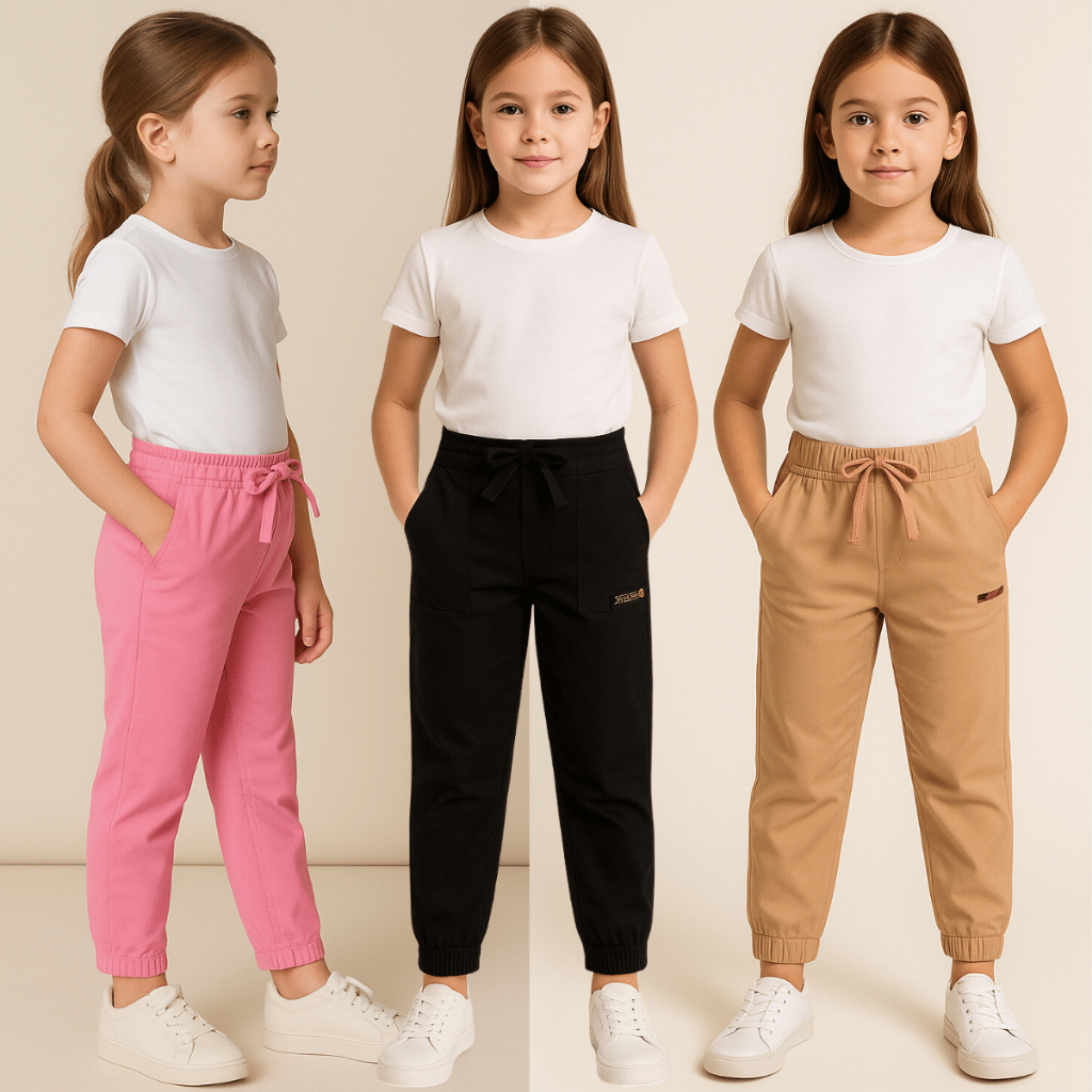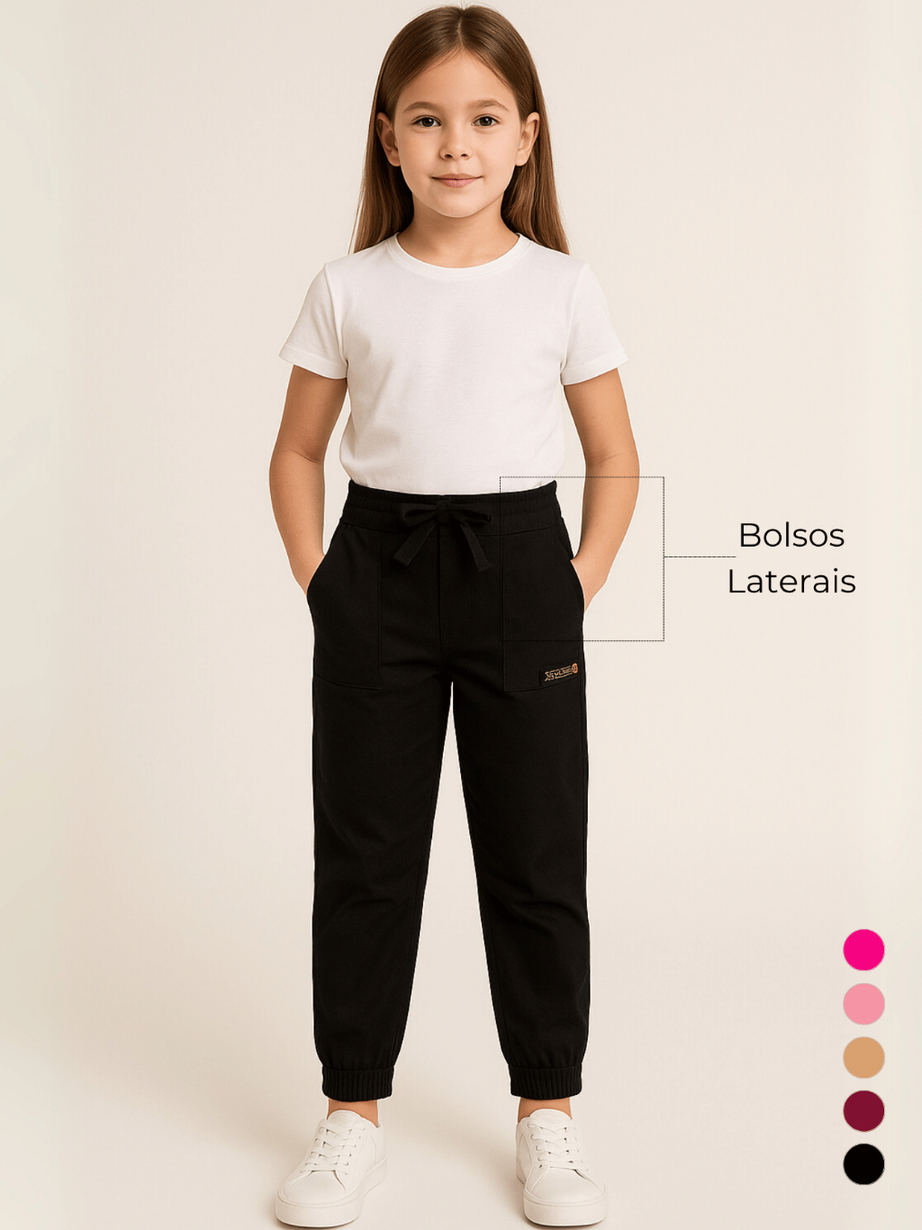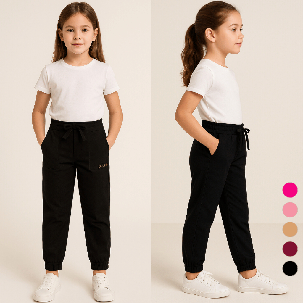 Calça Infantil Menina Jogger Estilo Blogueirinha Tendência Bolsos 2 4 6 8 Escola Básica Lisa Inverno