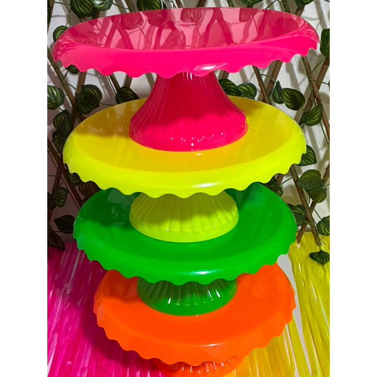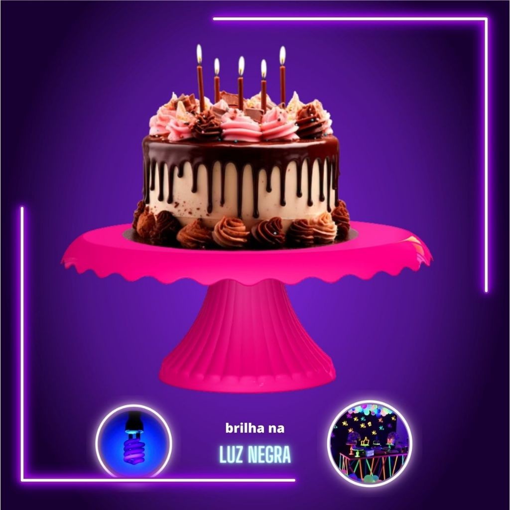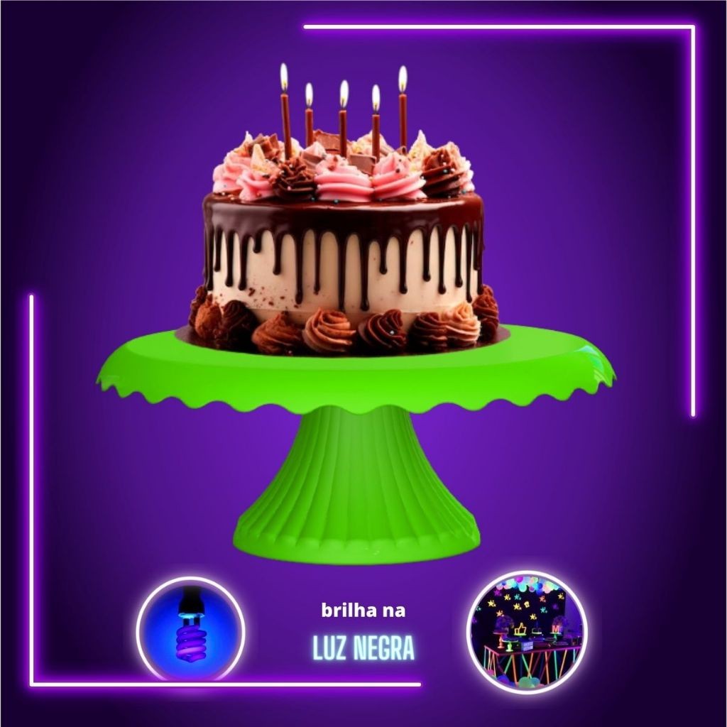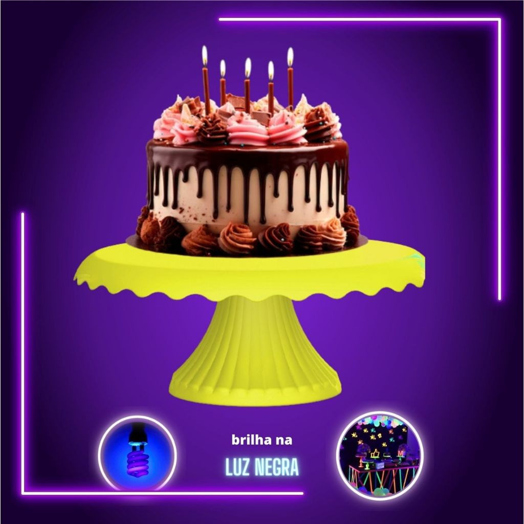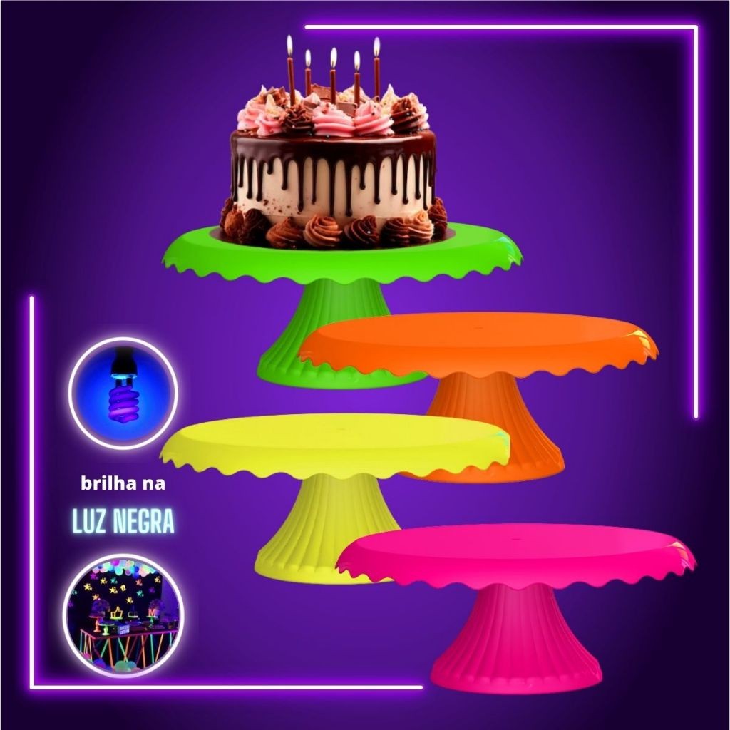 Kit 4 Boleiras Neon com Renda 22 Cm Bolo Festa Neon Brilha na Luz Negra