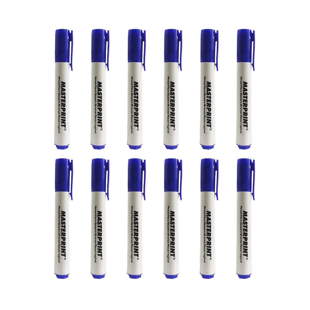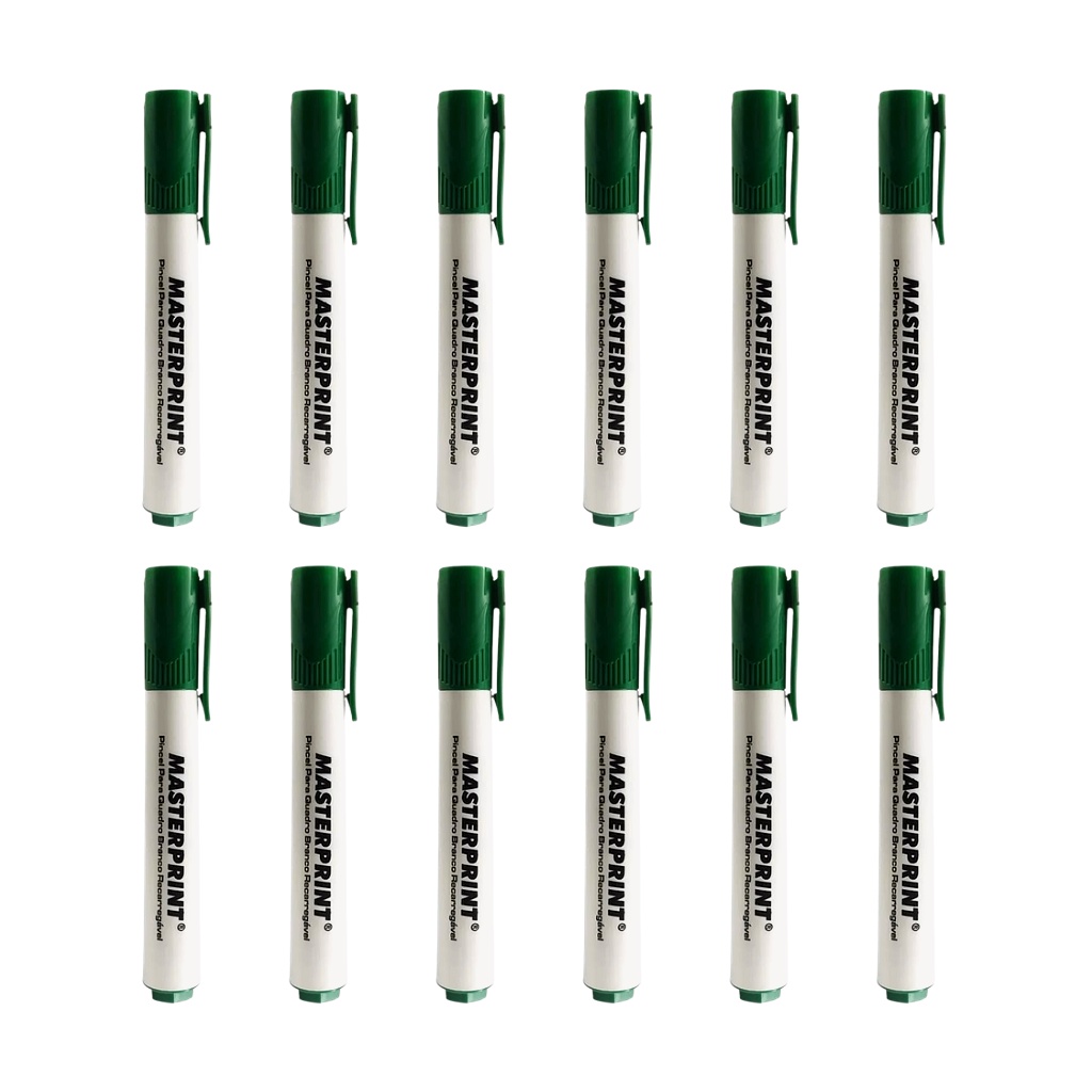 Caixa 12 unidades Pincel marcador para quadro branco pincel caneta escolar escritório recarregável verde azul preto vermelho