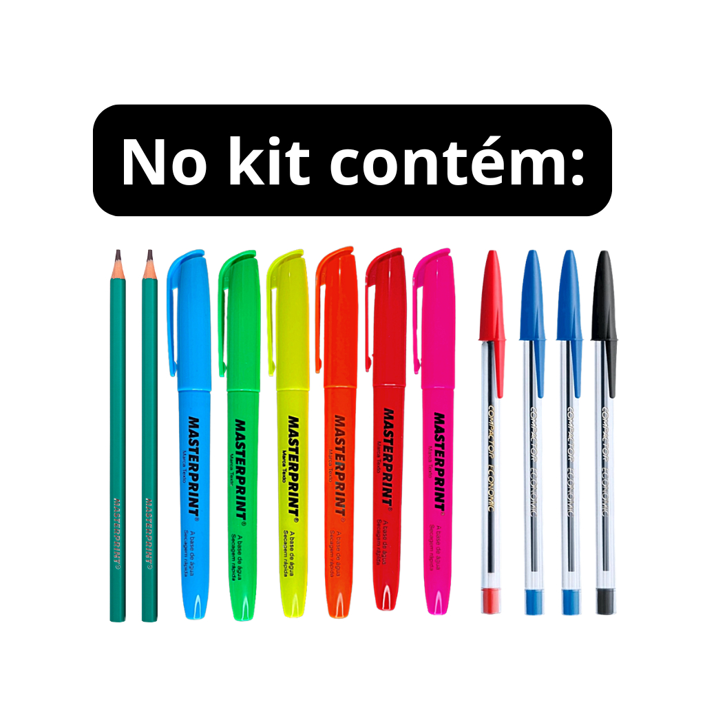 kit 19 Itens Material Escolar comp caderno 10 materias Volta as aulas ensino fundamental médio caneta lápis marca texto