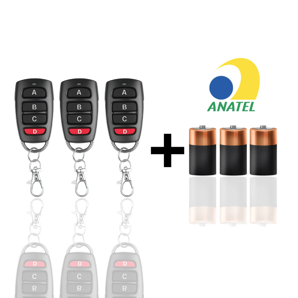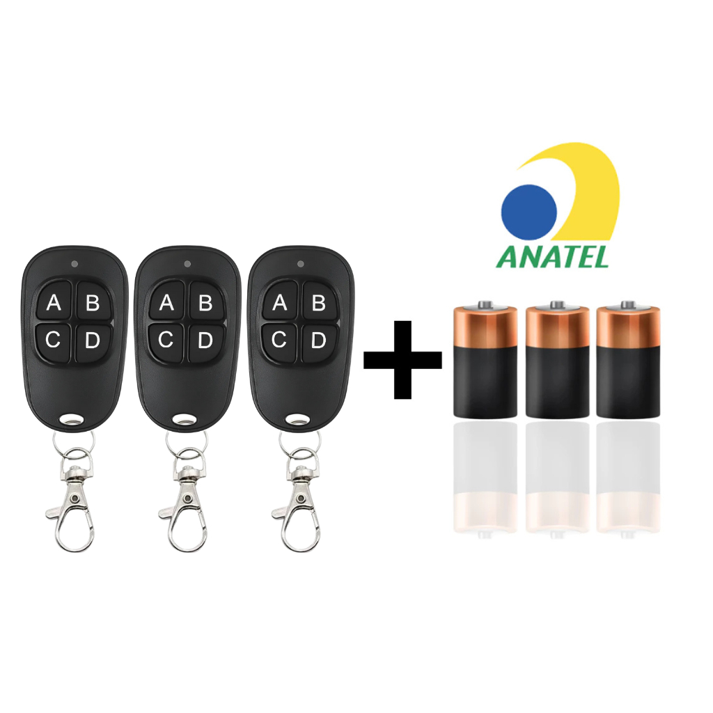 KIT Controle ORIGINAL de Portão Eletrônico Remoto Compatível 433Mhz automático Garagem 4 Botões Residencial universal