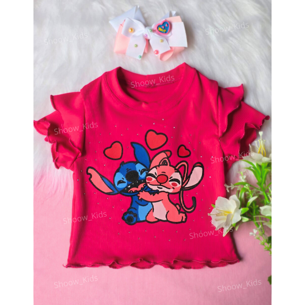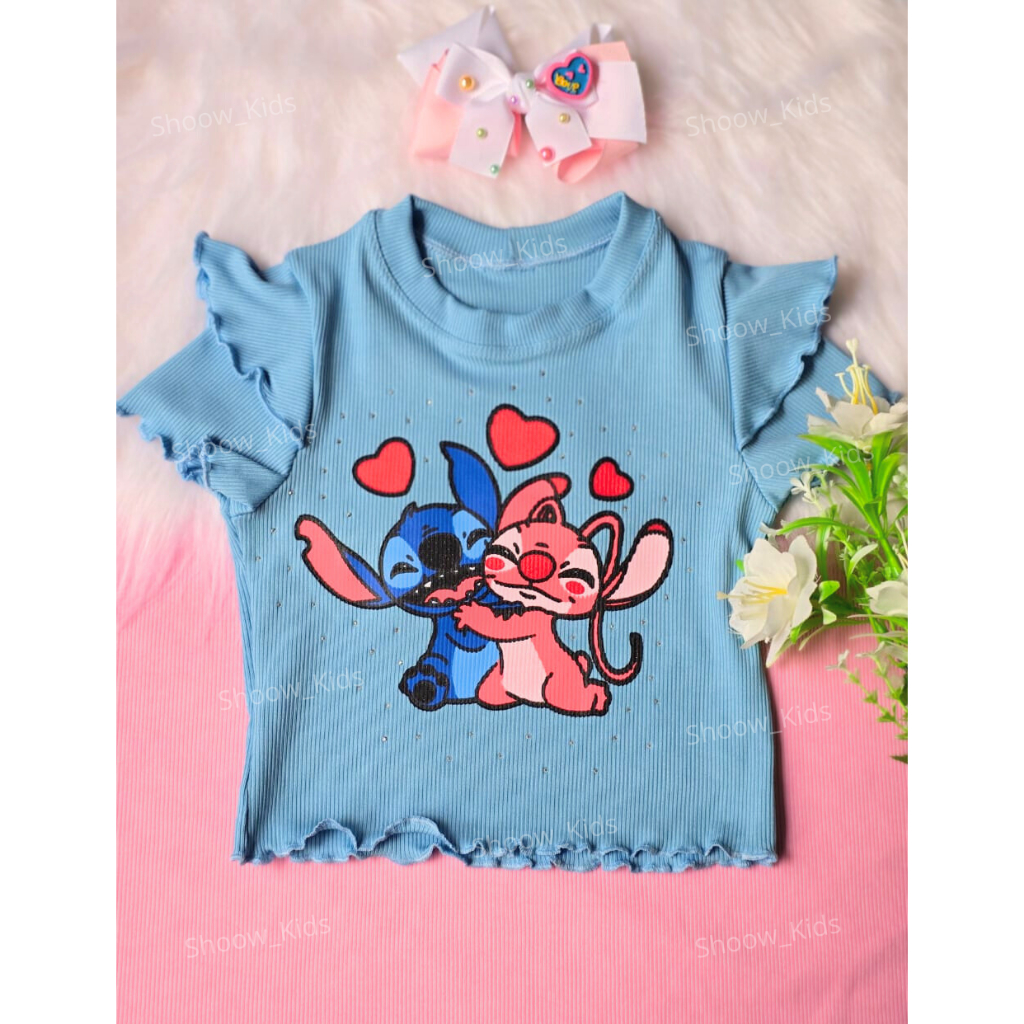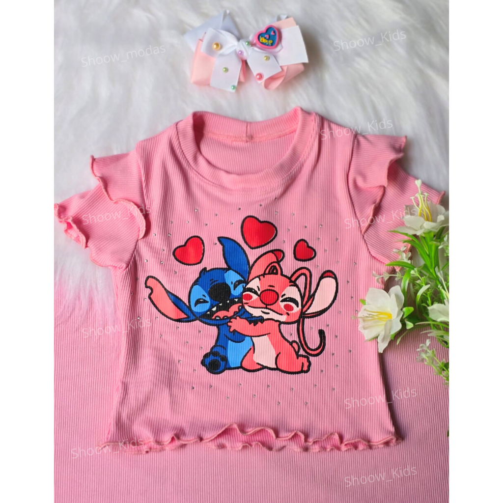 Blusa Stitch Brilho Canelado Ribana- Moda Feminina Infantil- KIDS