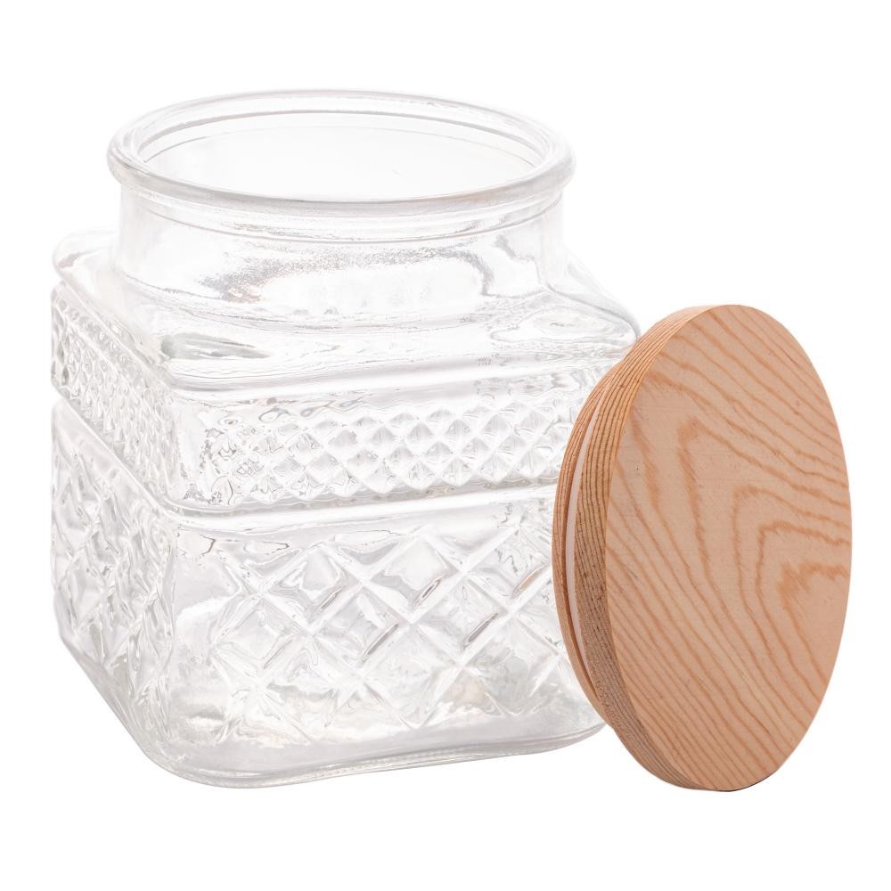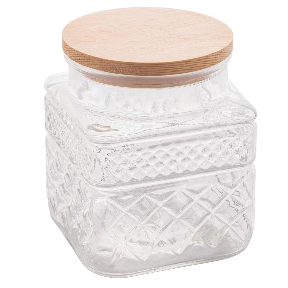 Porta Mantimentos Wolff de Vidro com Tampa em Madeira 1,2L