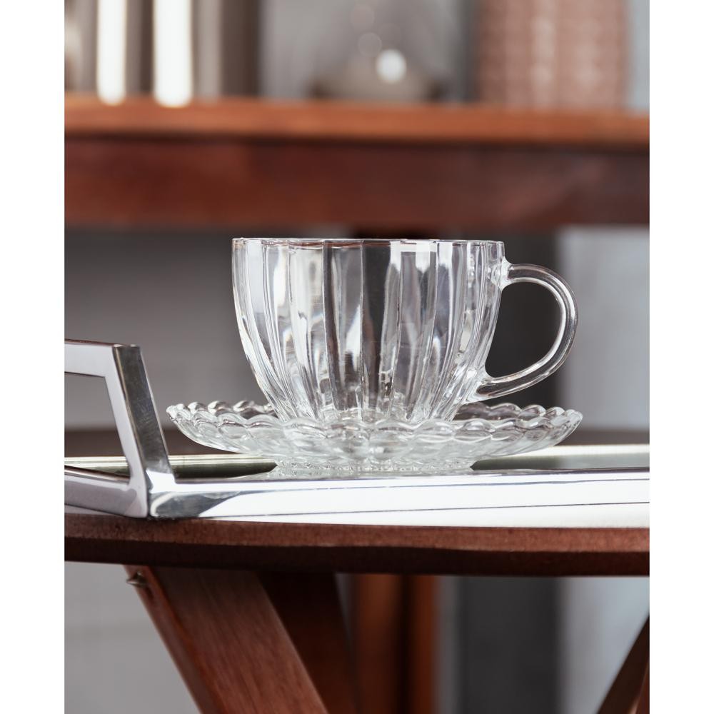 6 Xícaras de Chá Wolff Pétala de Vidro com Pires 200ml Luxo