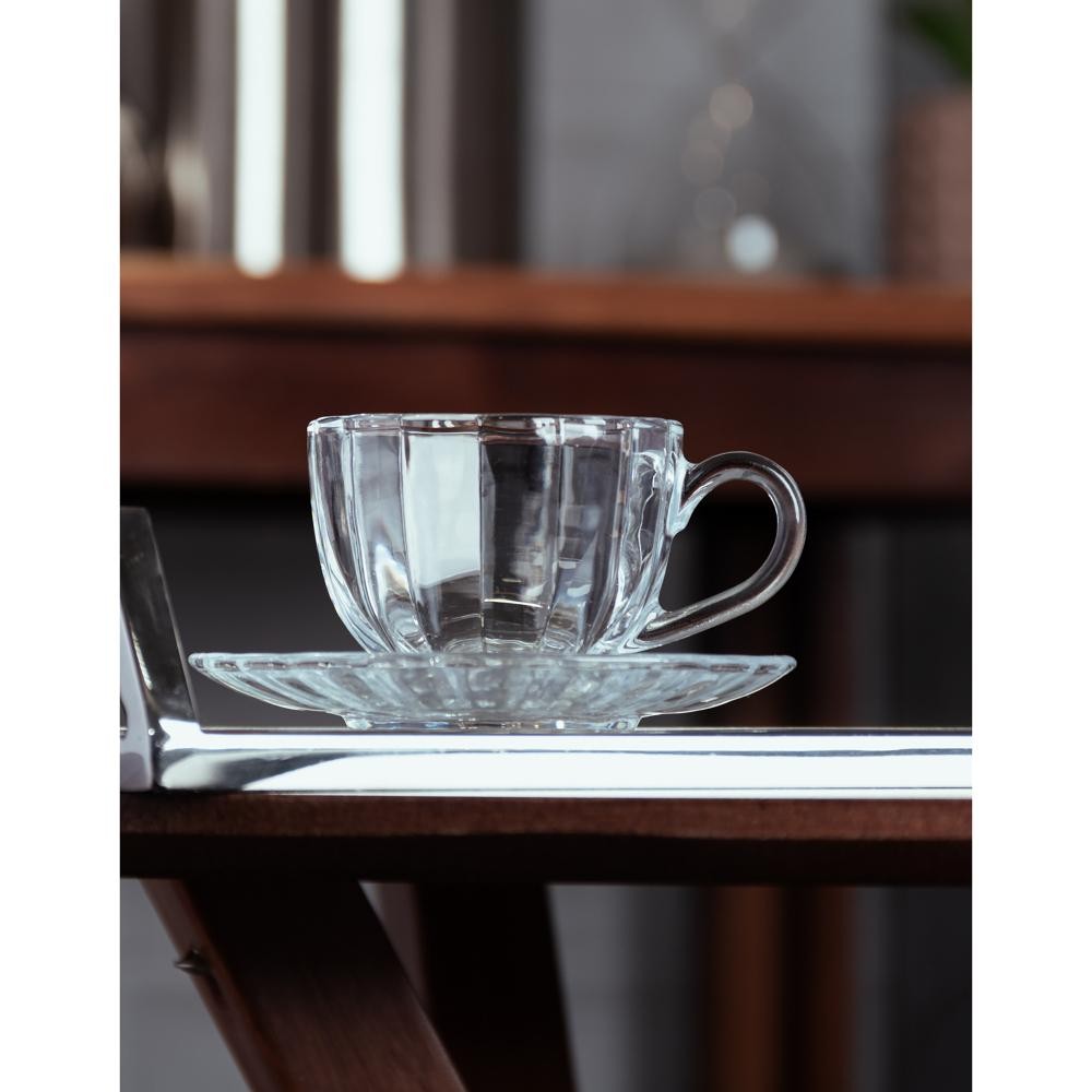 6 Xícaras de Café Wolff Pétala de Vidro com Pires 100ml