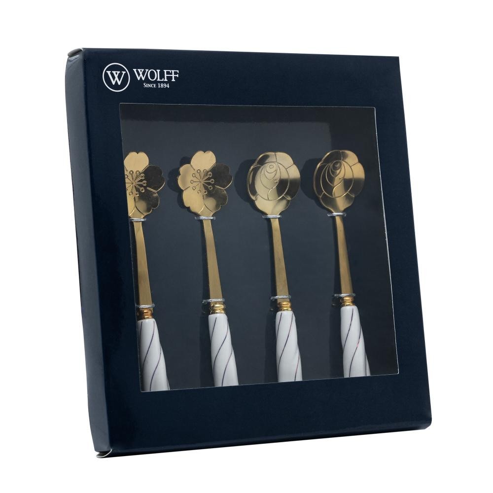 4 Colheres Wolff Flowers de Aço Inox Dourado Branco