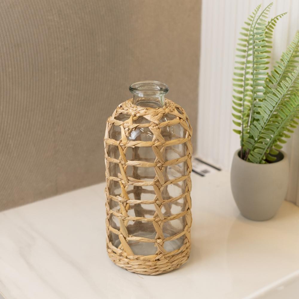 Vaso Wolff de Vidro e Fibra Natural 12cm x 25cm