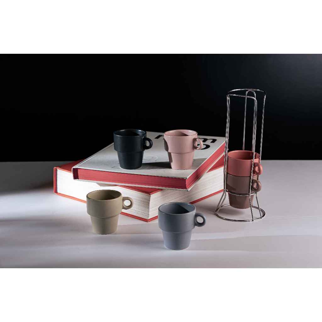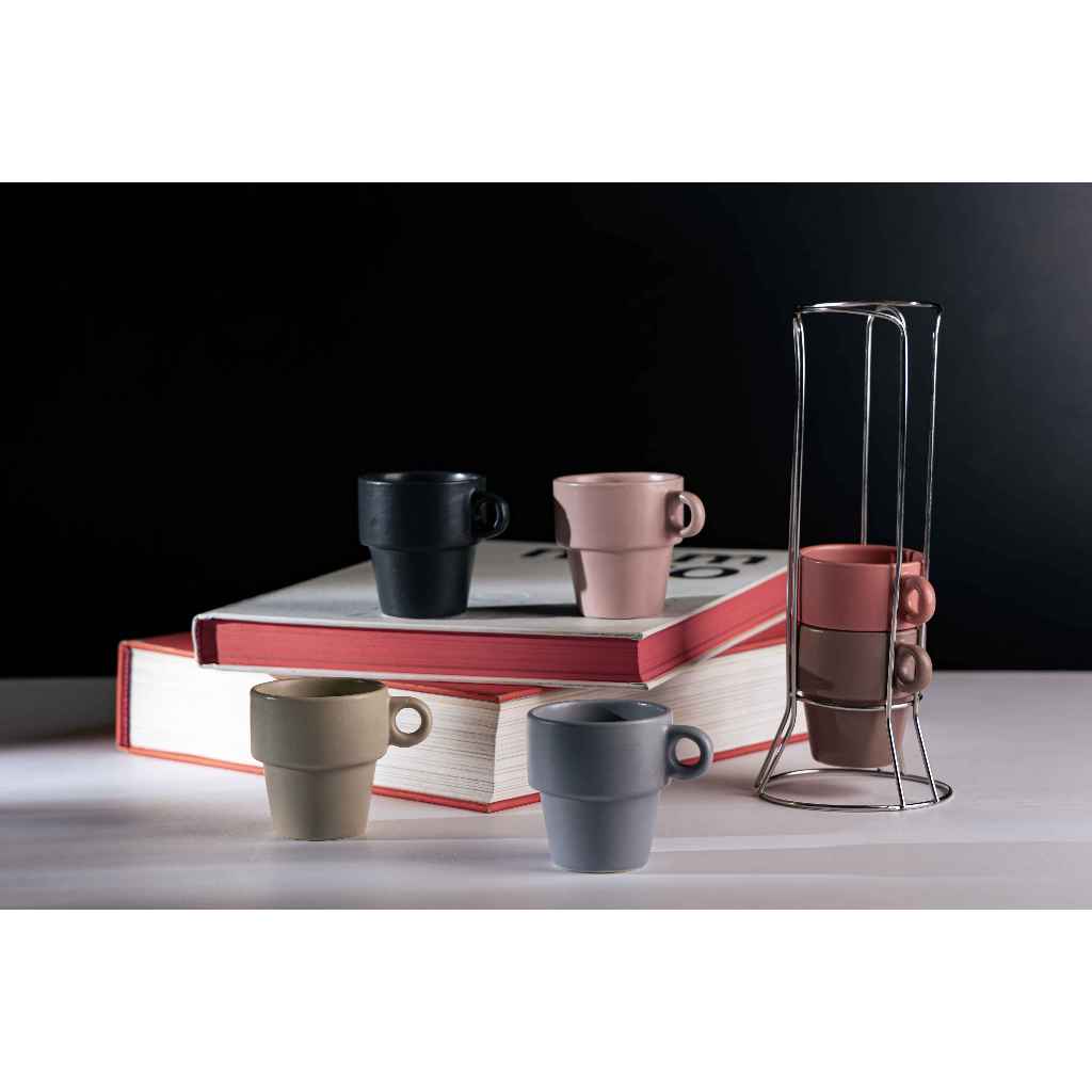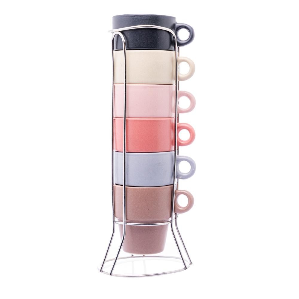 Conjunto com 6 Xícaras de Café Empilháveis com Suporte Coloridas – Wolff