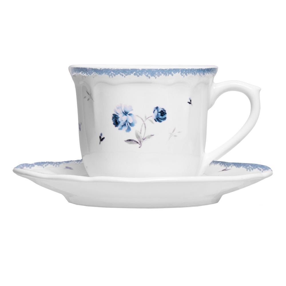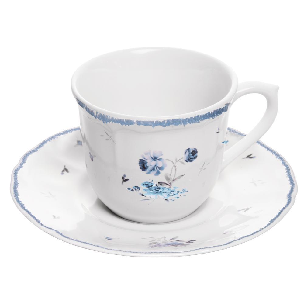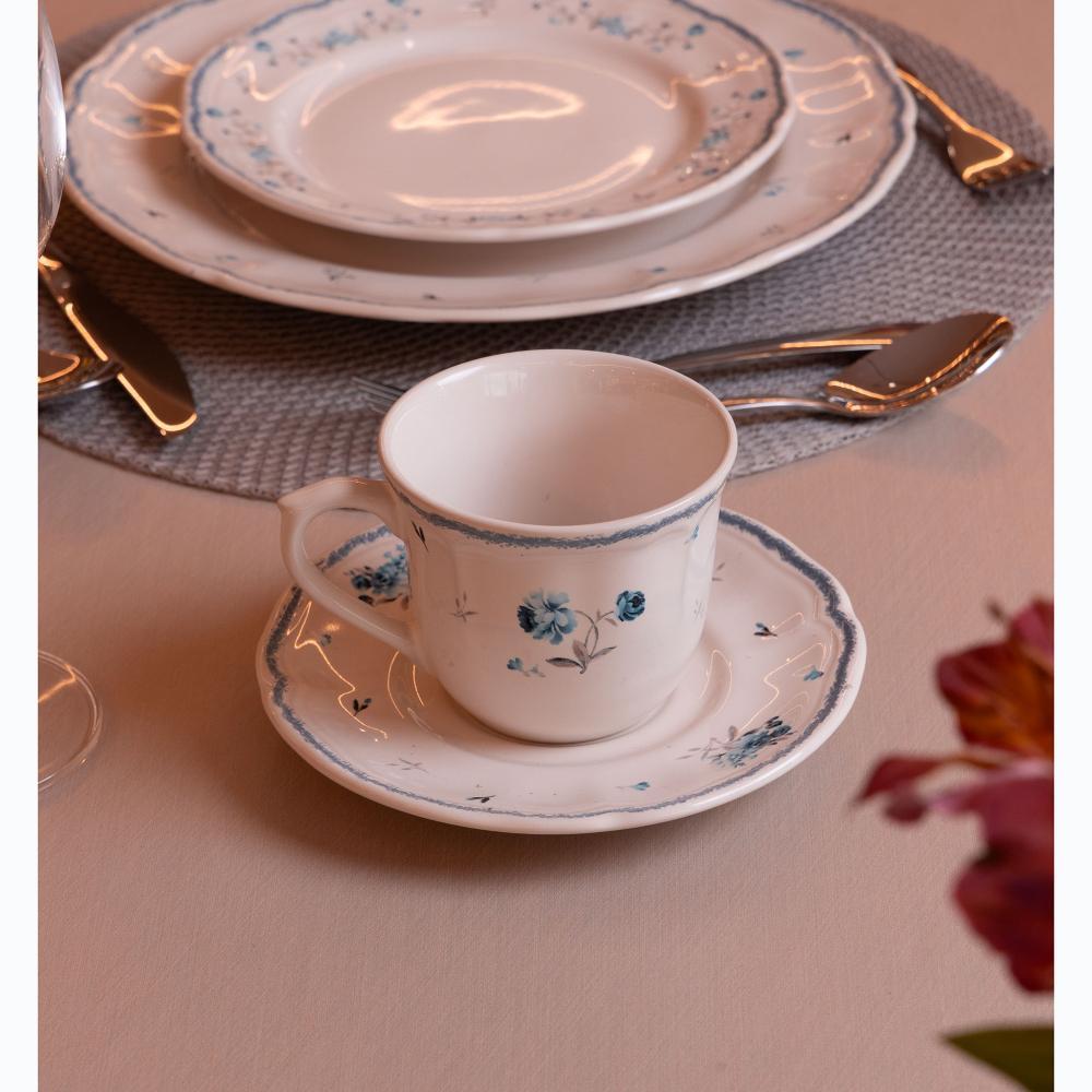Xícara de Chá com Pires Wolff Florescer 200ml Azul Cerâmica
