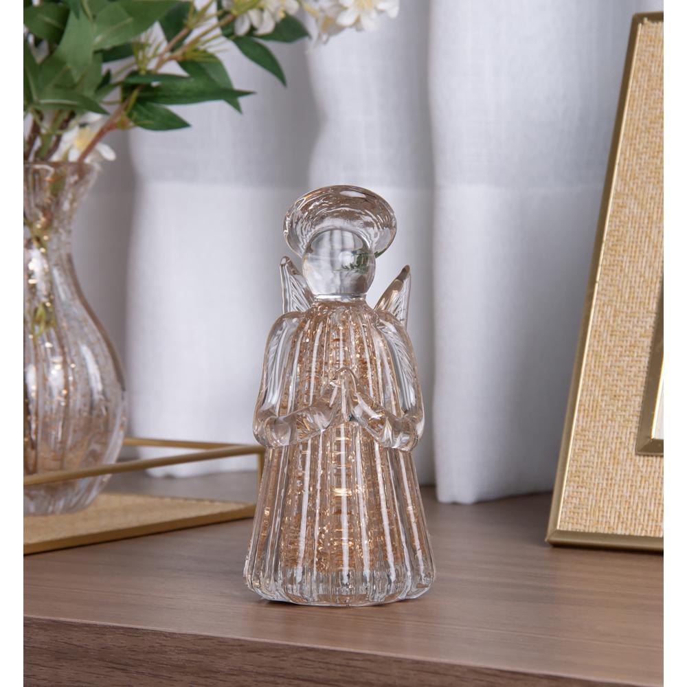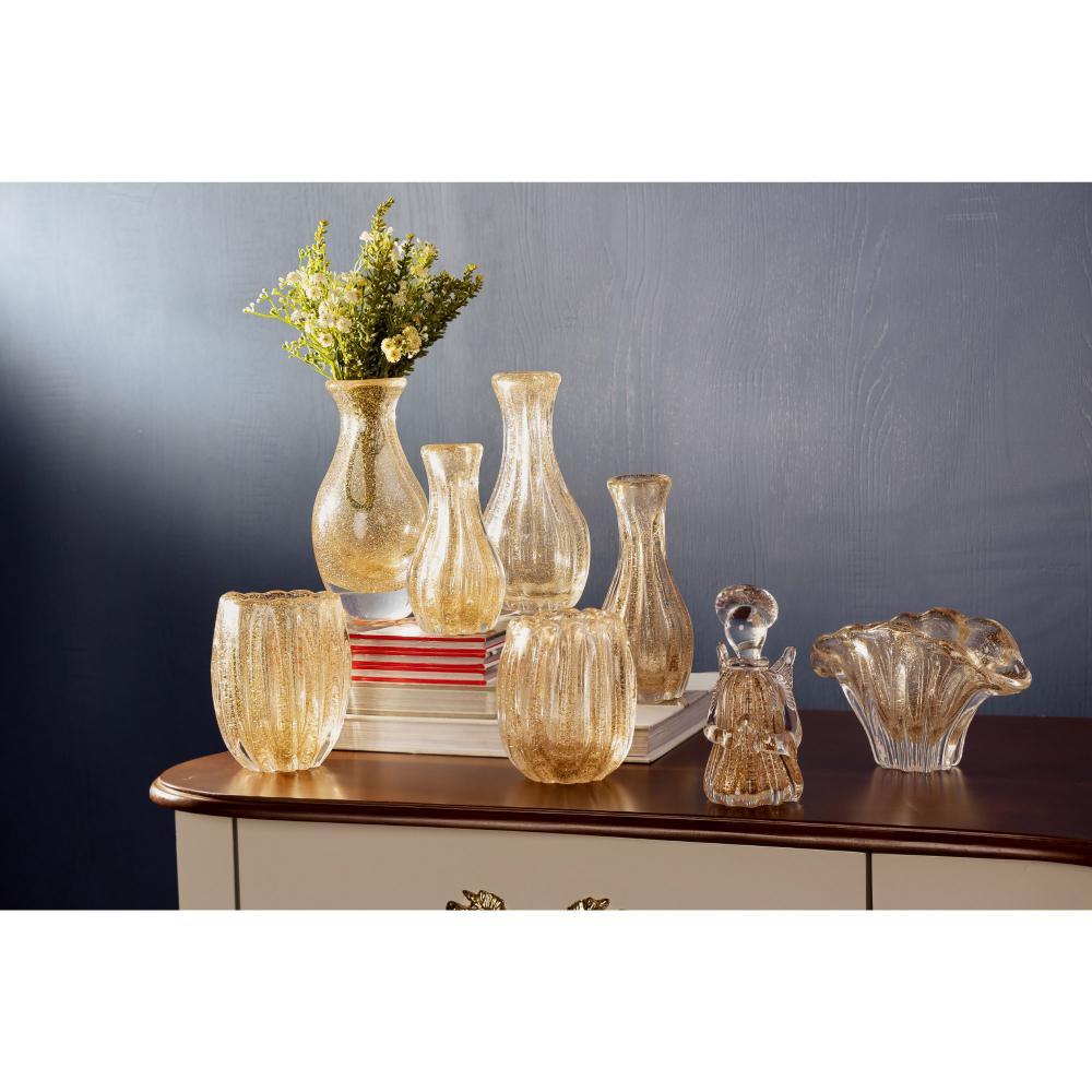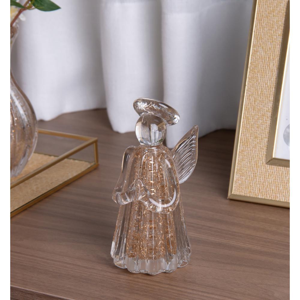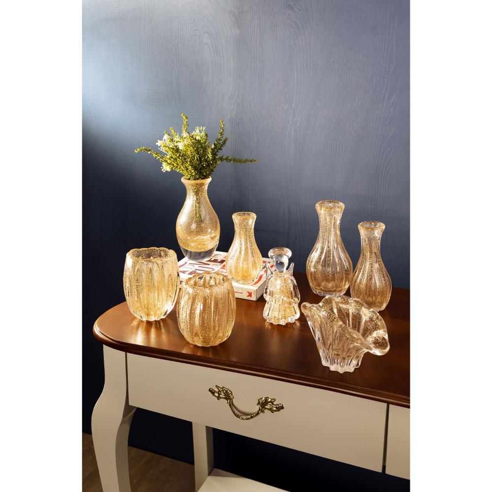 Figura Decorativa Anjo Wolff Italy de Vidro Dourado 7cm x 7cm x 15cm