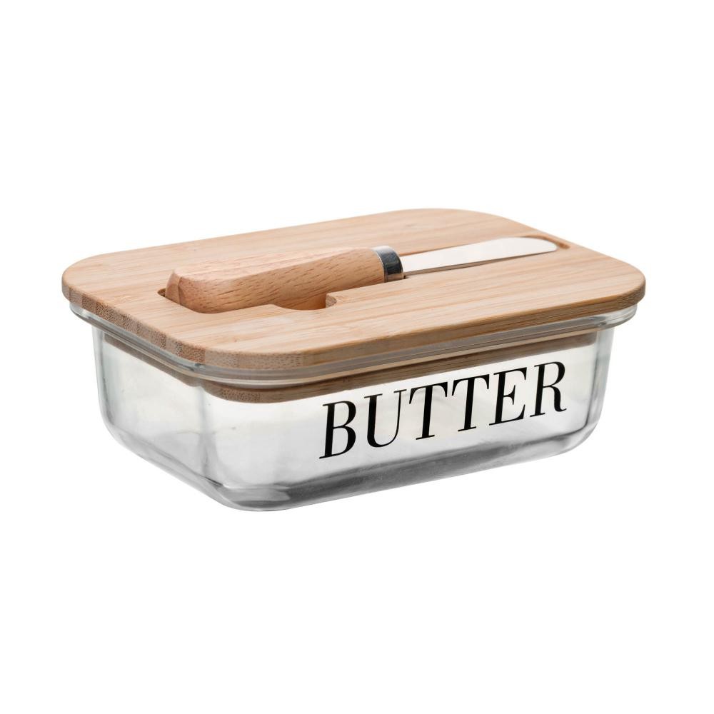 Manteigueira Wolff de Vidro com Espátula e Tampa de Bambu