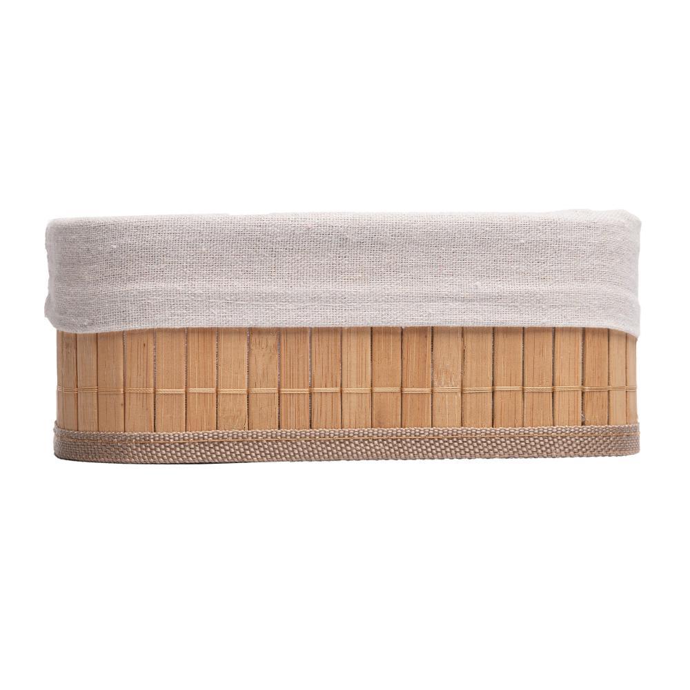 3 Cestos Retangulares Lyor de Bambu com Forro em Tecido