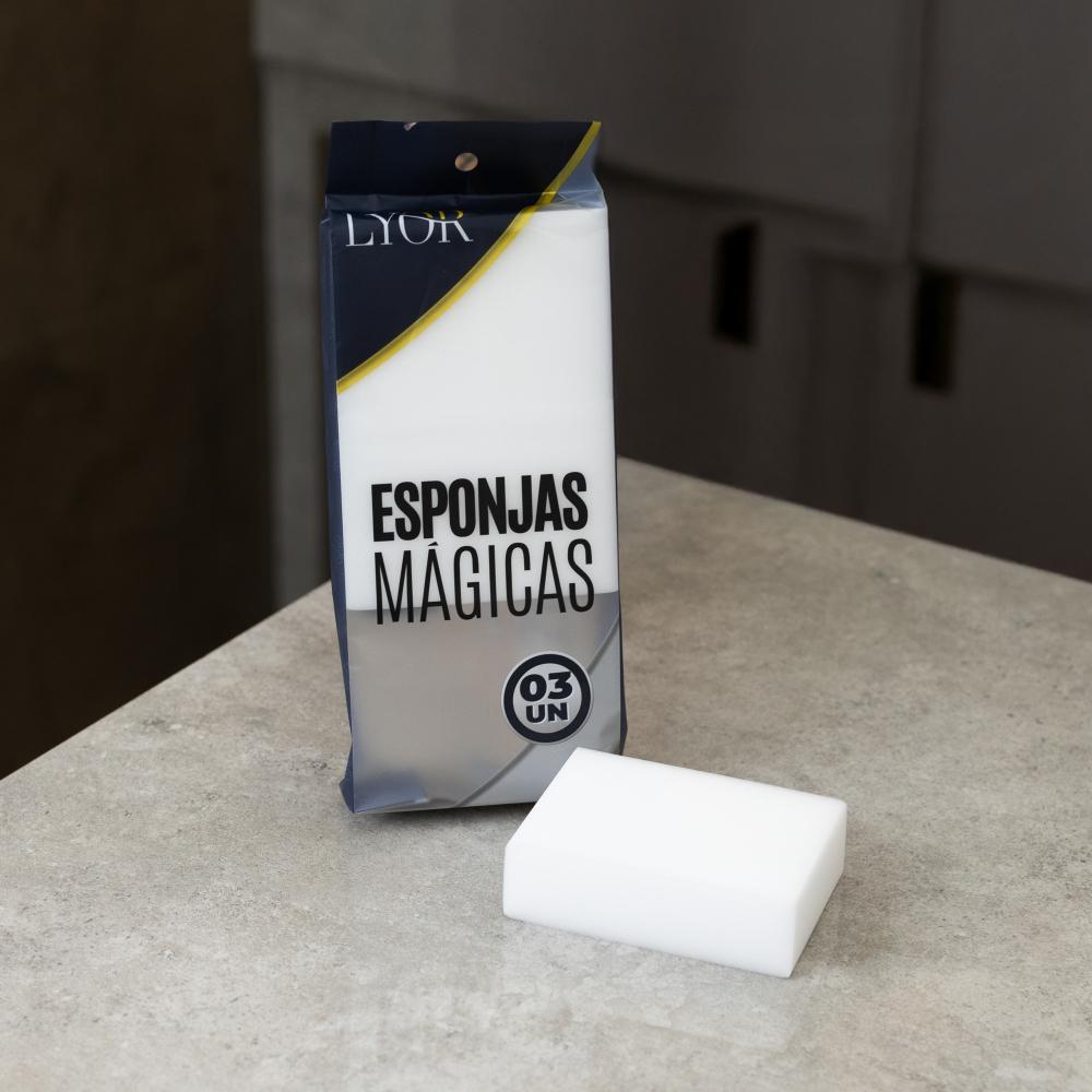3 Esponjas Mágicas Lyor de Melamina 10cm x 21cm x 3cm