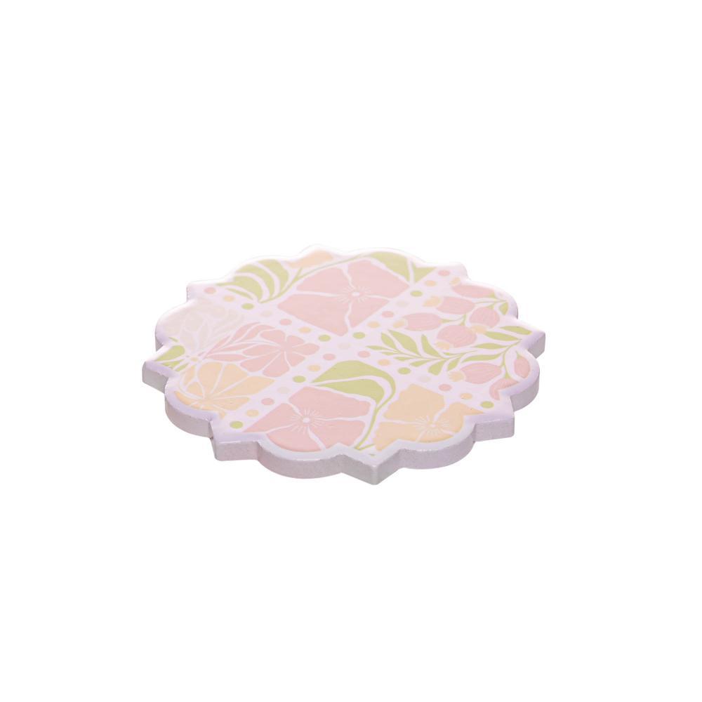 4 Porta Copos Floral 10cm Cerâmica
