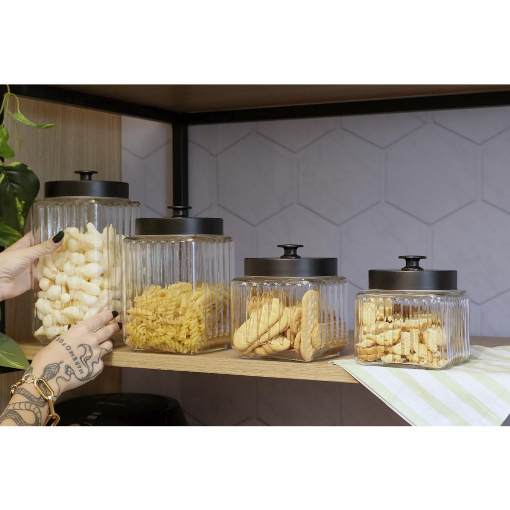 Porta Mantimento Lyor Vegas de Vidro com Tampa Preto 1,7L