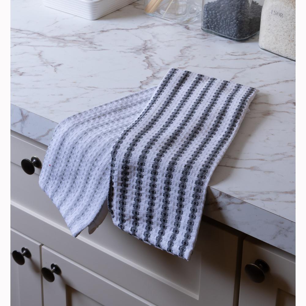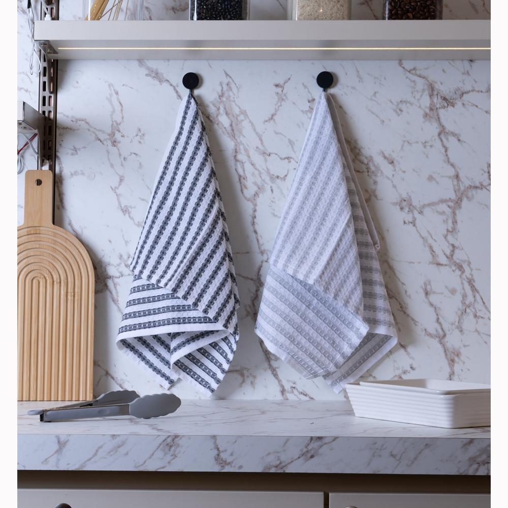 2 Panos de Prato Lyor Verona 60x40cm Cinza e Branco Algodão