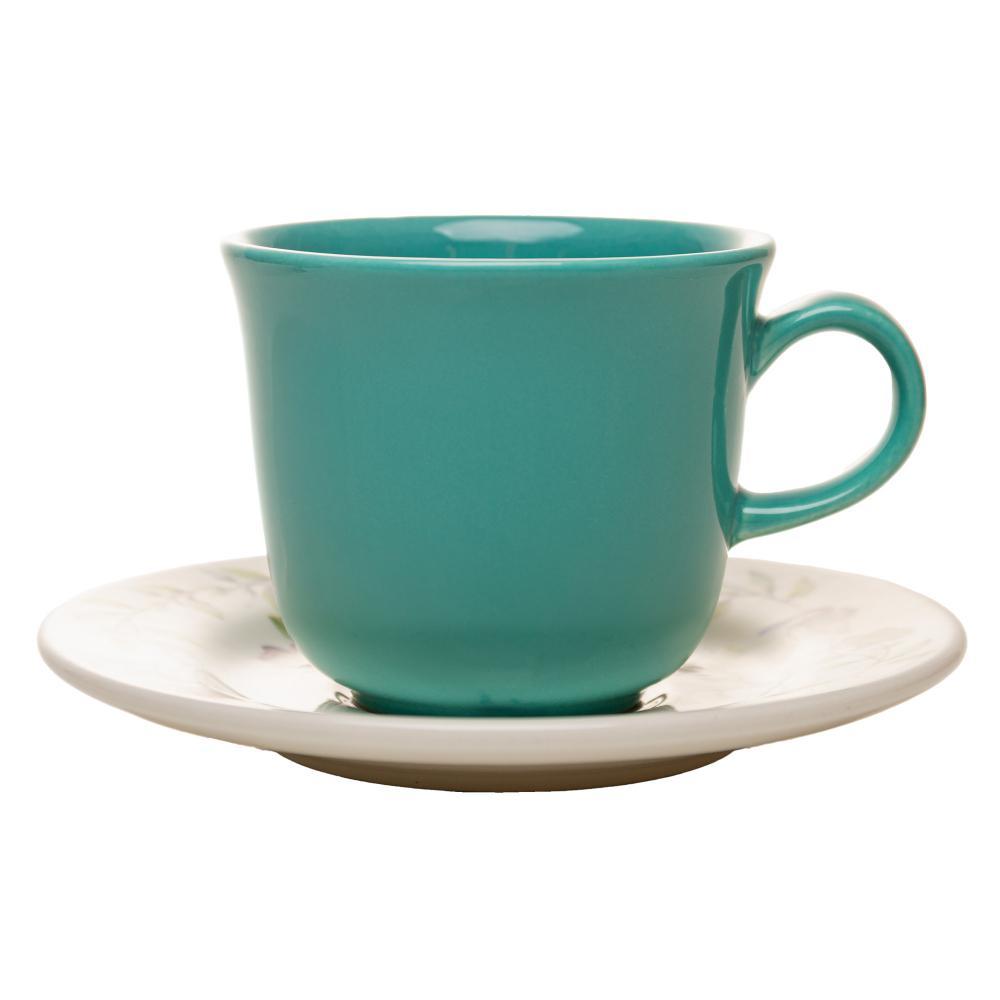 Xícara de Chá com Pires Lyor Botanique Verde 260ml Cerâmica