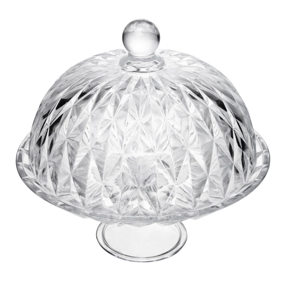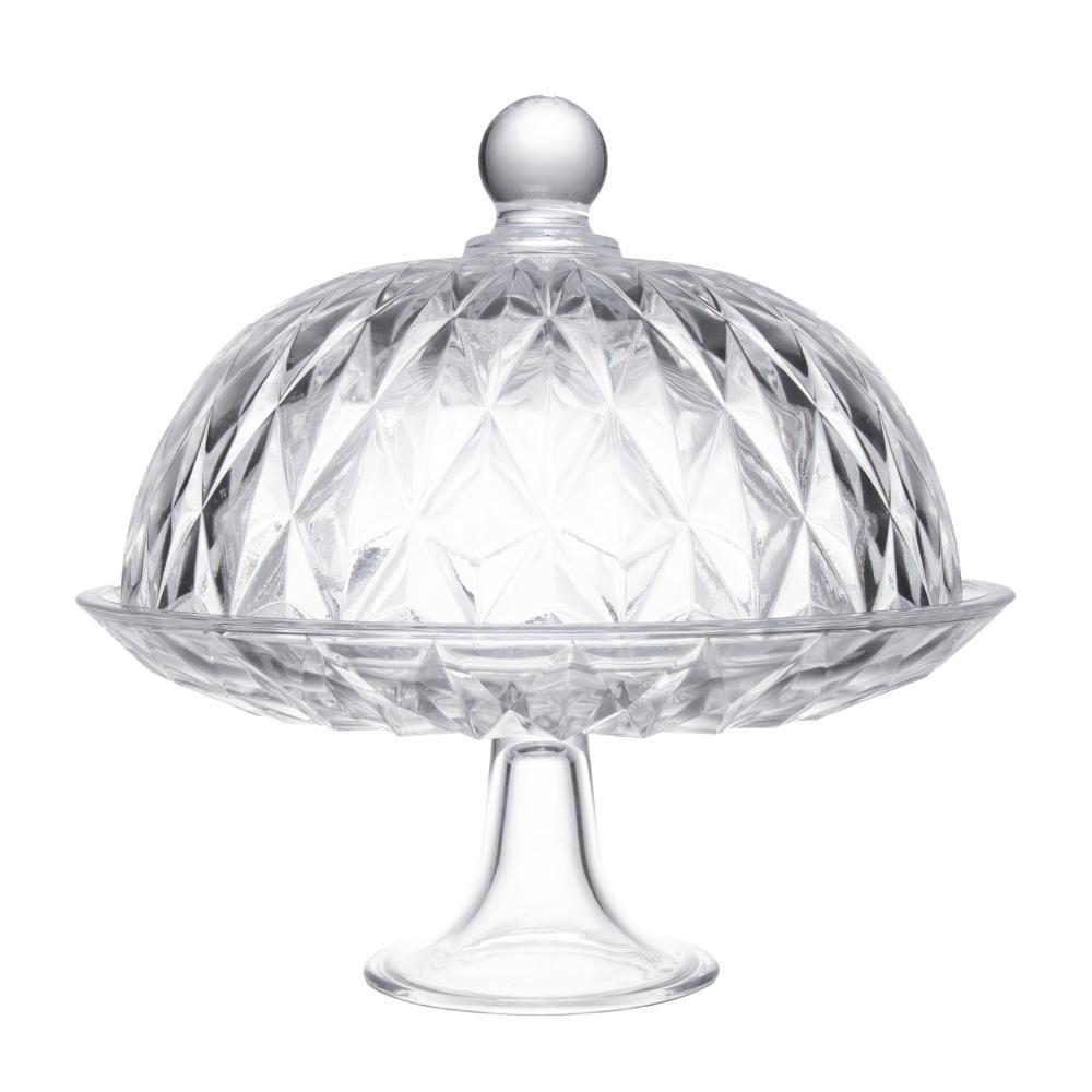 Prato para Bolo com Pé e Tampa Diamond 25 x 23,5cm Cristal