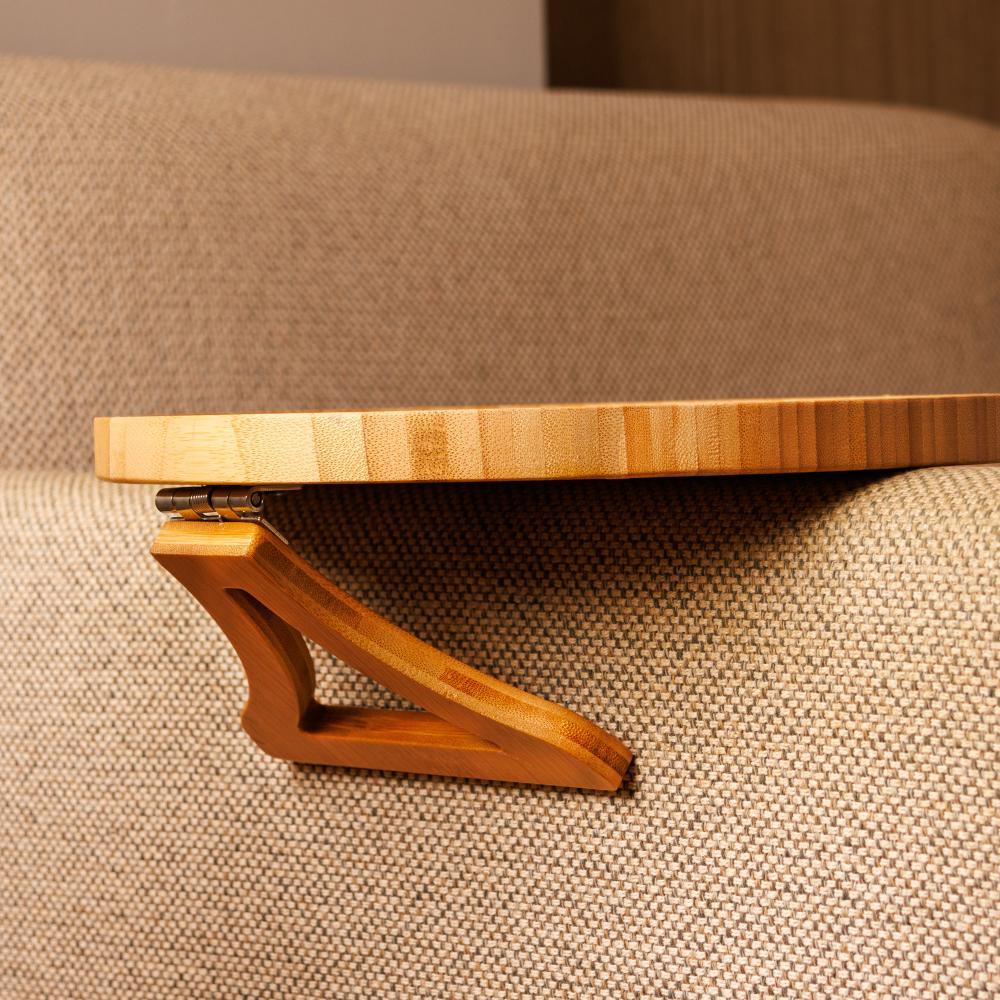 Bandeja Redonda Dobrável para Braço de Sofá Lyor 25cm Bambu