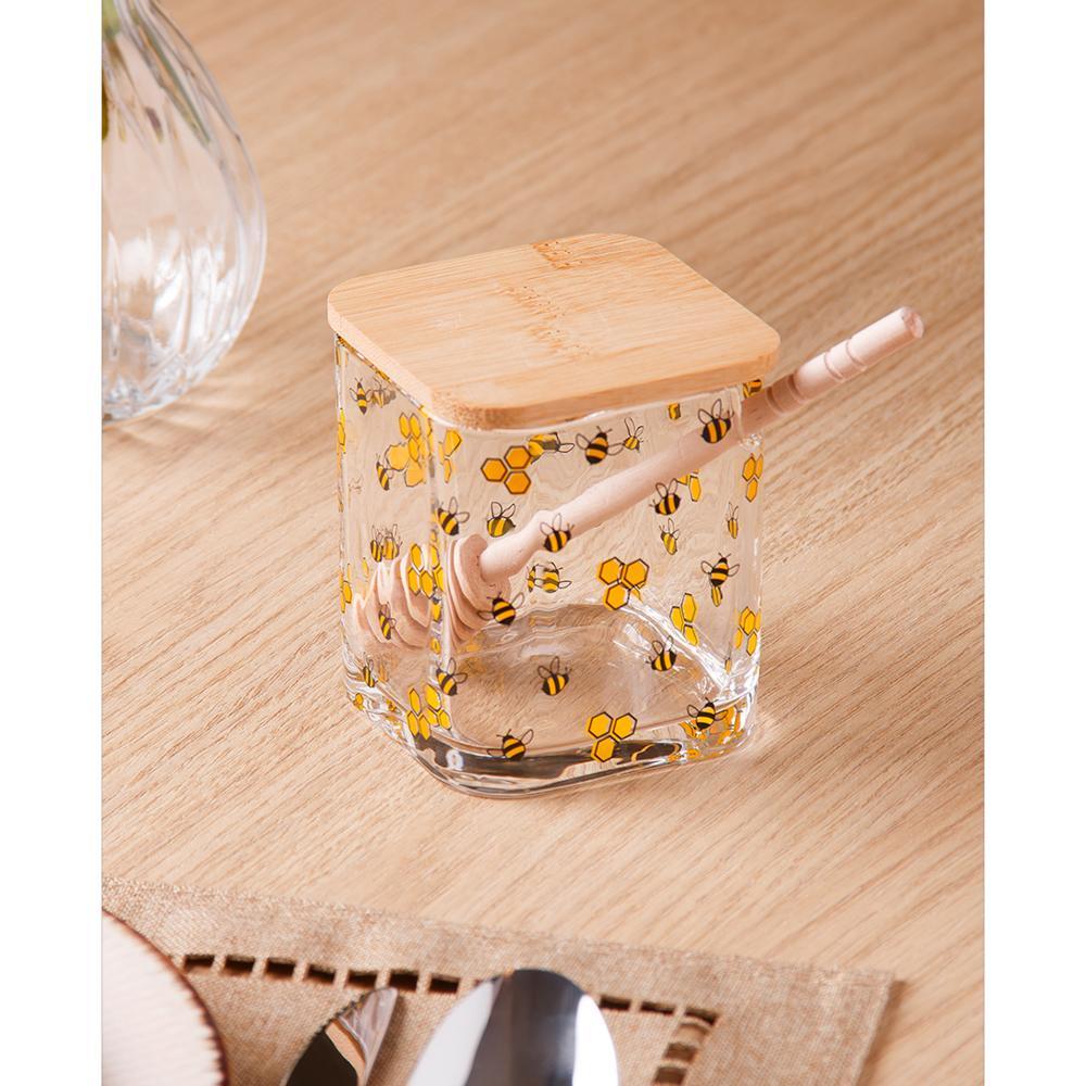 Meleira com Tampa e Pegador Bambu Bee Lyor 8cm x 9,5cm Vidro
