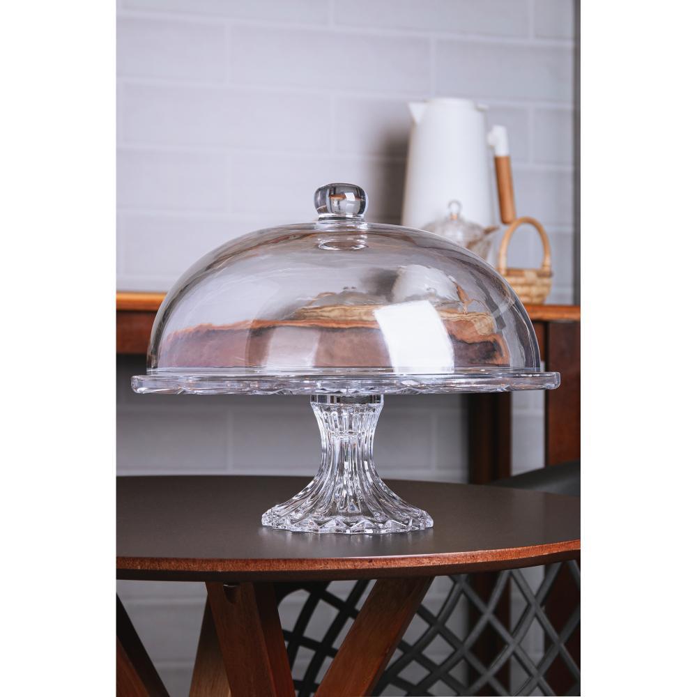 Prato para Bolo com Pé e Tampa Deli Diamond Lyor 30cmx23,5cm