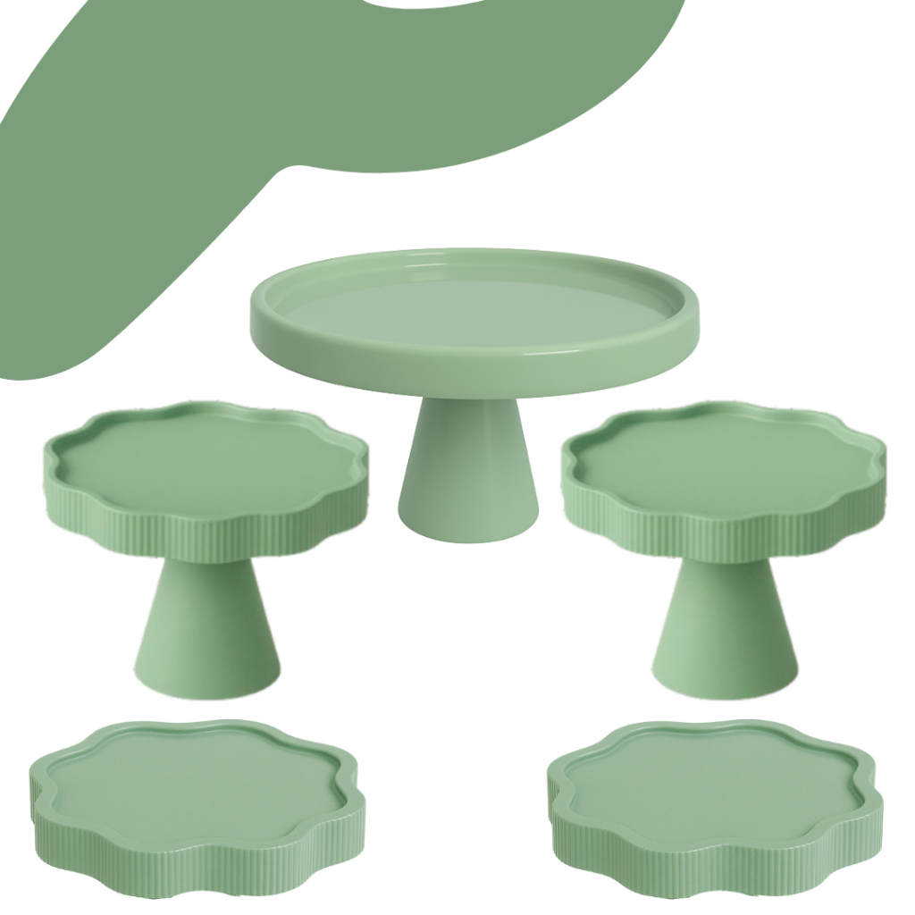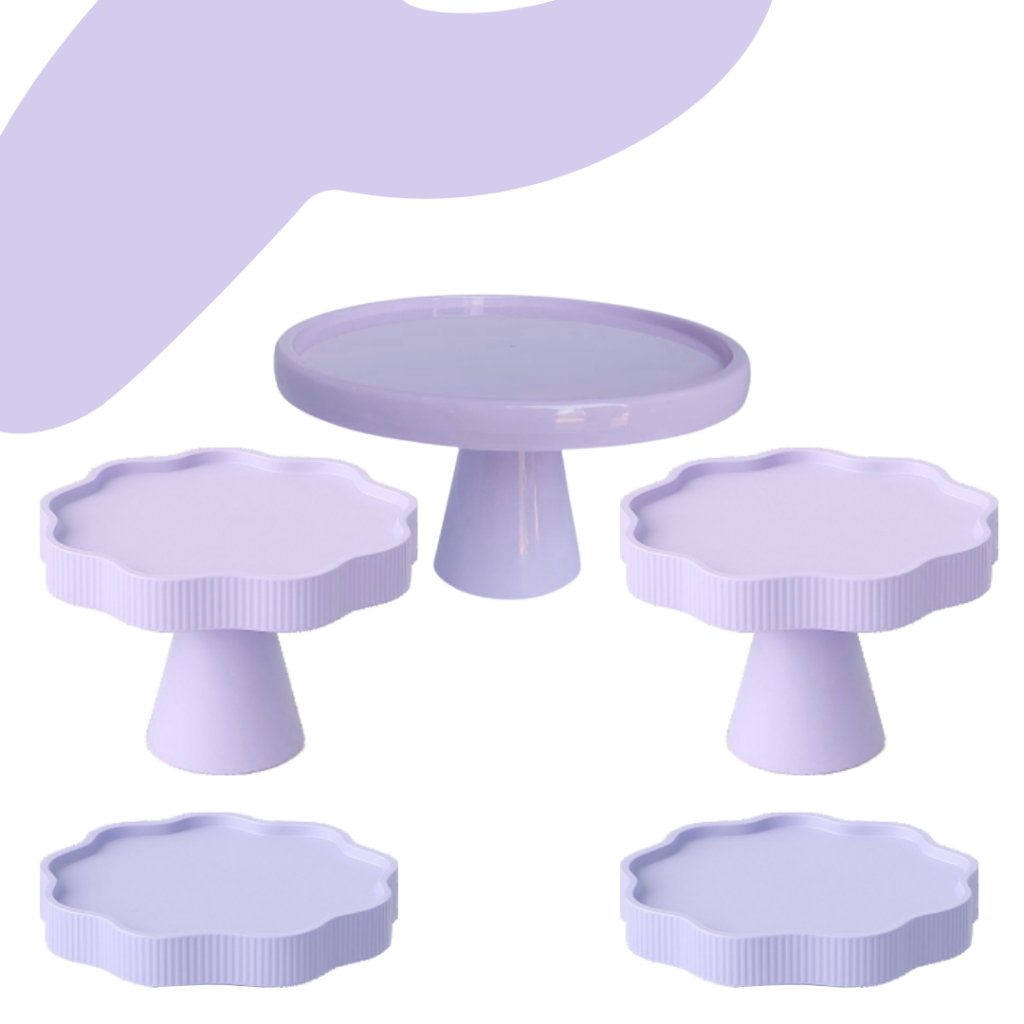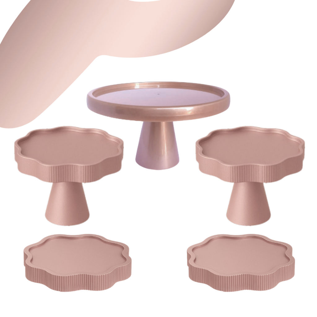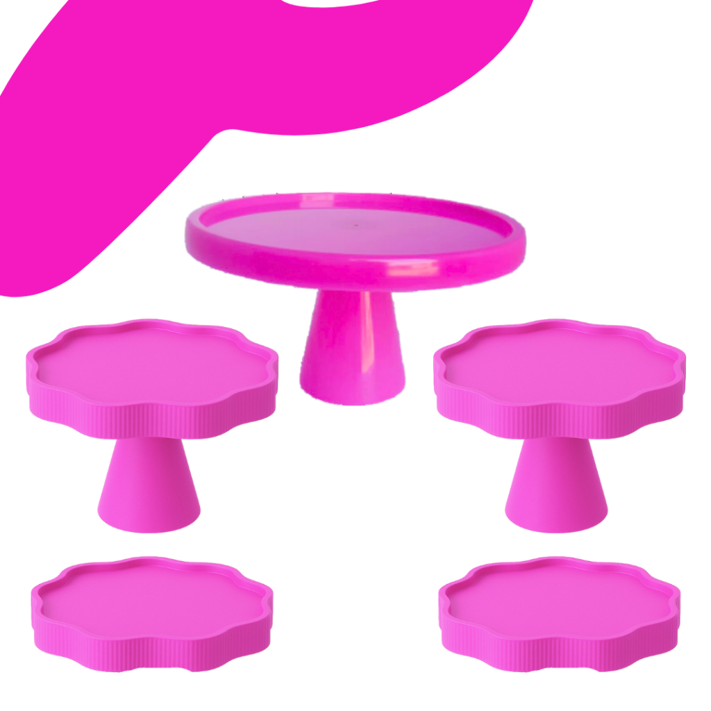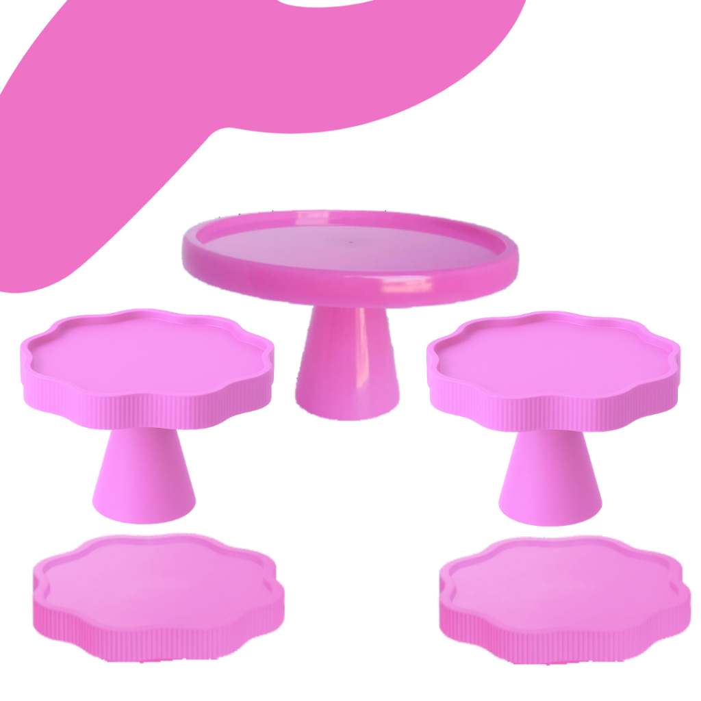 KIT MESA COM 1 BOLEIRA REDONDA + 2 PORTA DOCE FLOR + 2 BANDEJA FLOR PARA DECORAÇÃO ANIVERSARIO FESTA