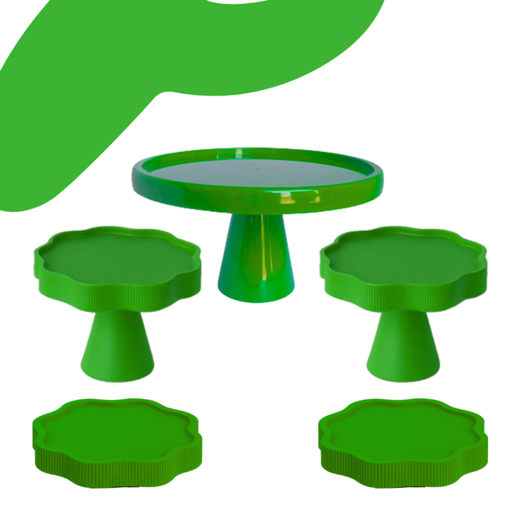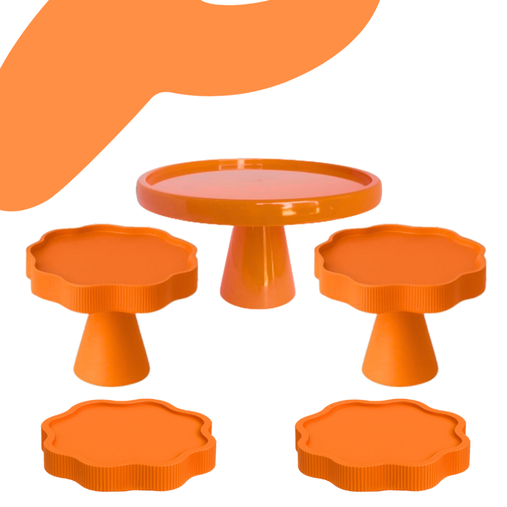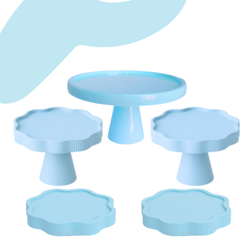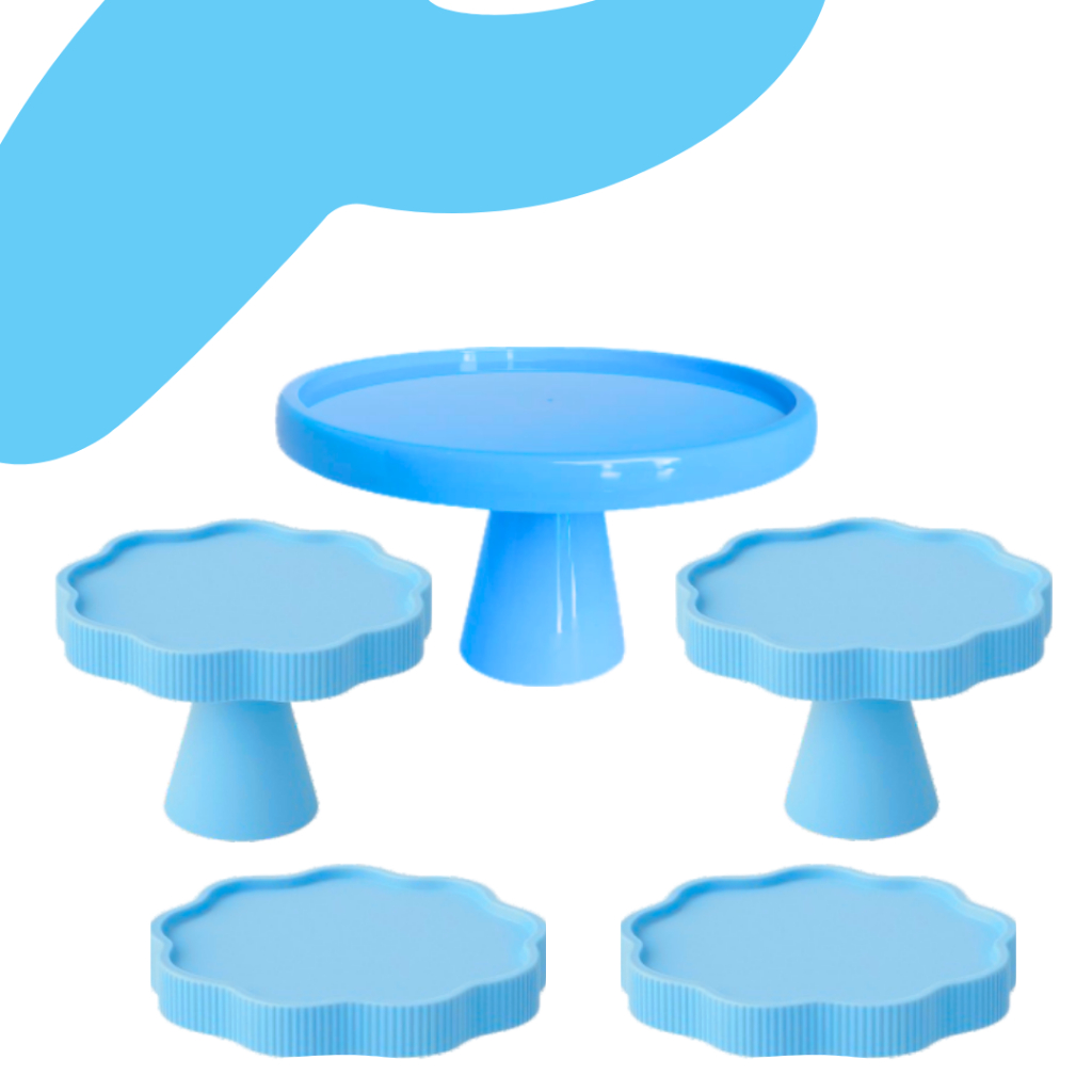 KIT MESA COM 1 BOLEIRA REDONDA + 2 PORTA DOCE FLOR + 2 BANDEJA FLOR PARA DECORAÇÃO ANIVERSARIO FESTA