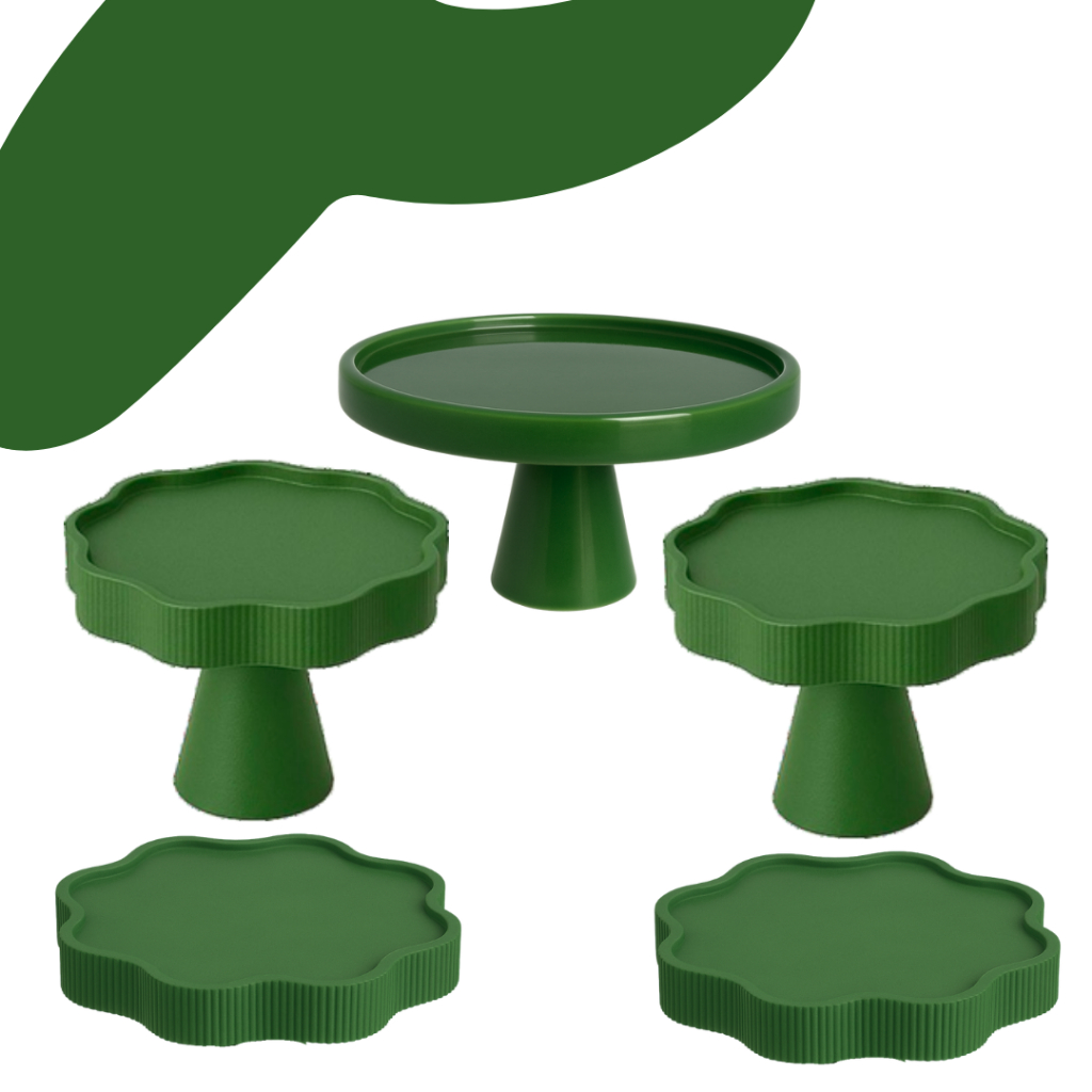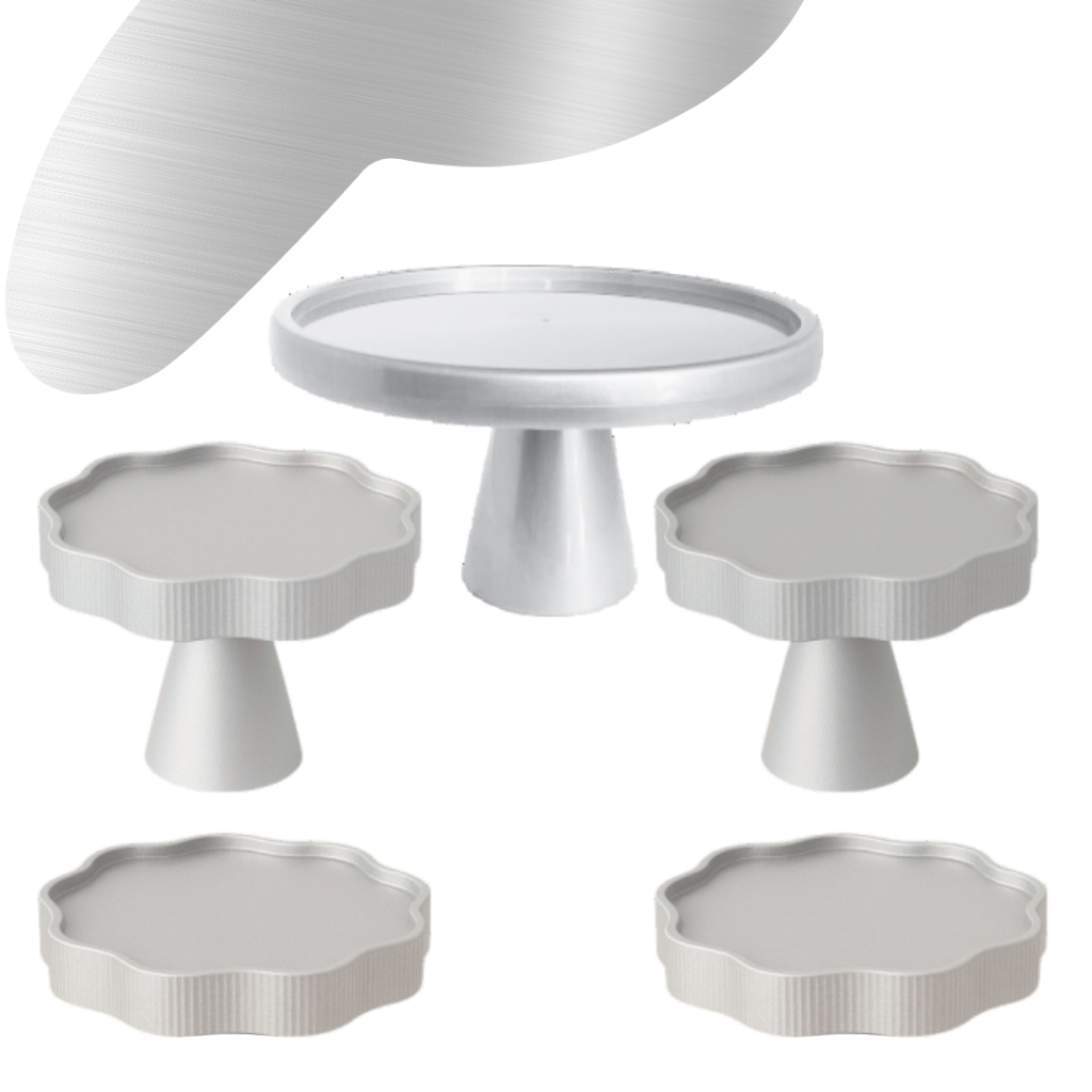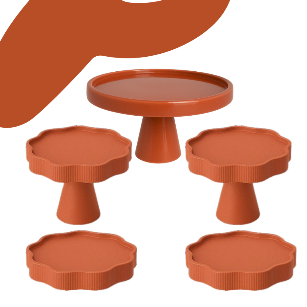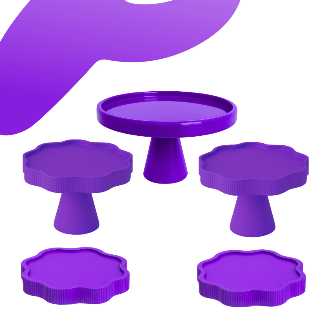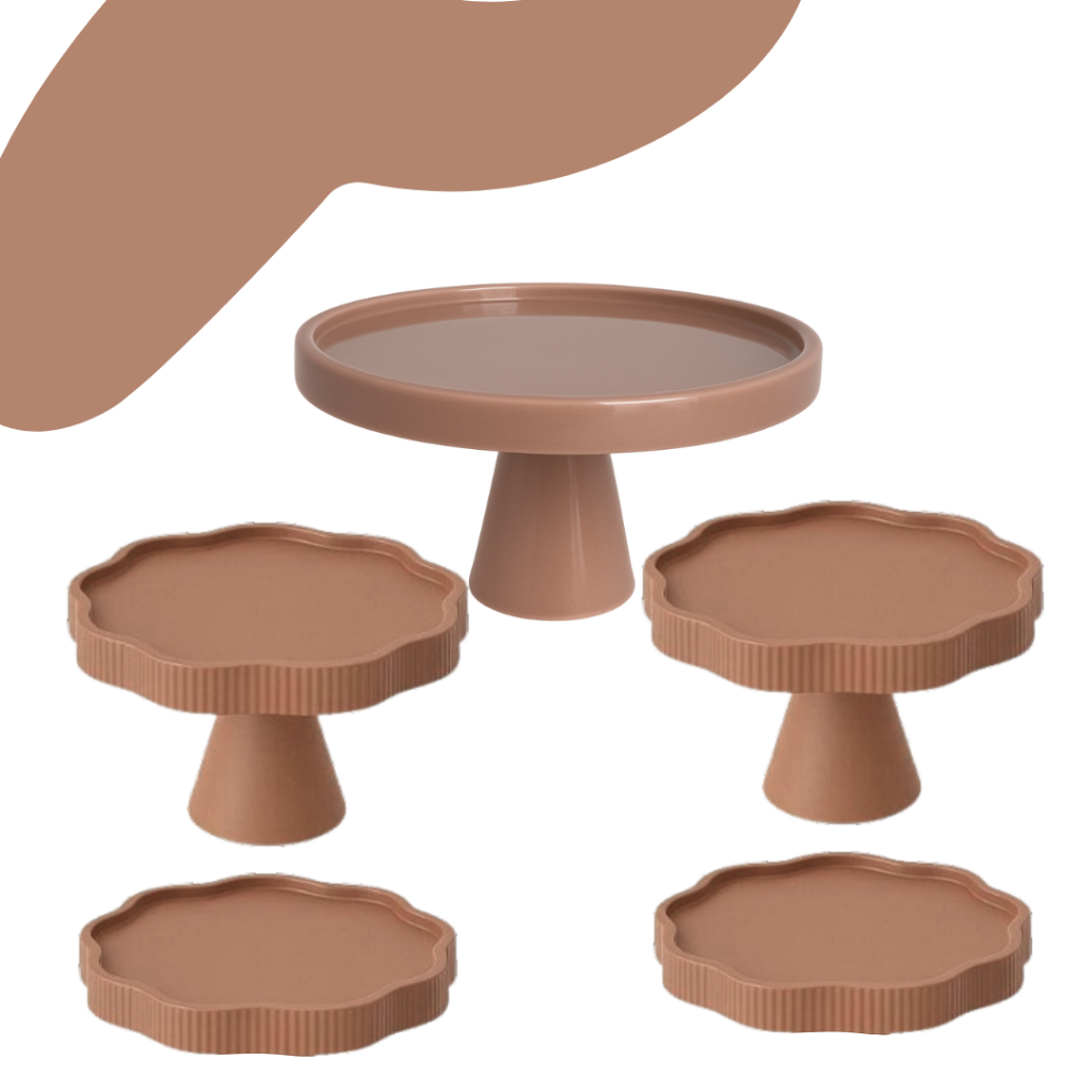 KIT MESA COM 1 BOLEIRA REDONDA + 2 PORTA DOCE FLOR + 2 BANDEJA FLOR PARA DECORAÇÃO ANIVERSARIO FESTA