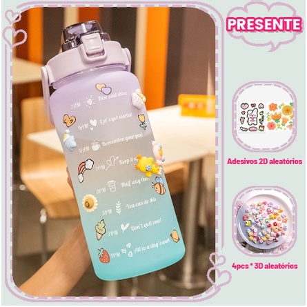 Garrafa Grande 2000ML ou 900ML Com Canudo, Frases Motivacionais e Adesivos