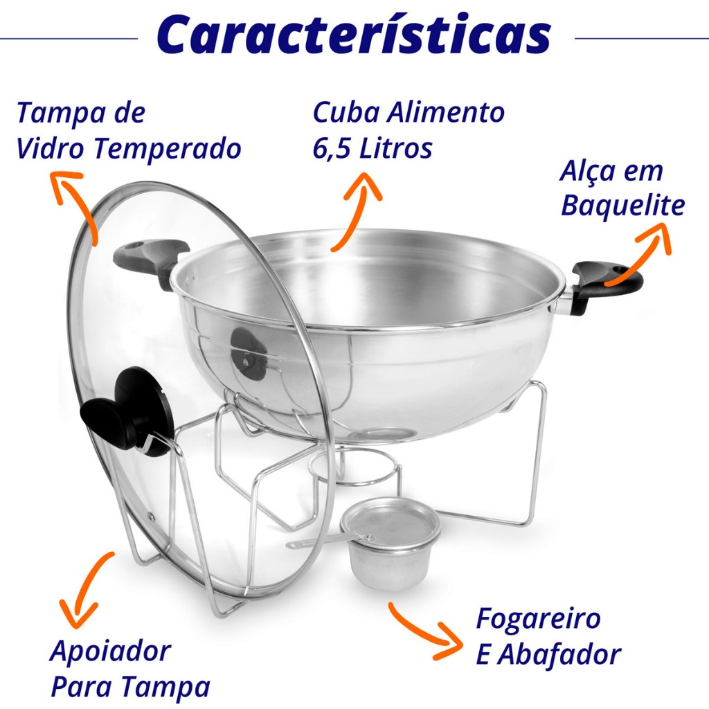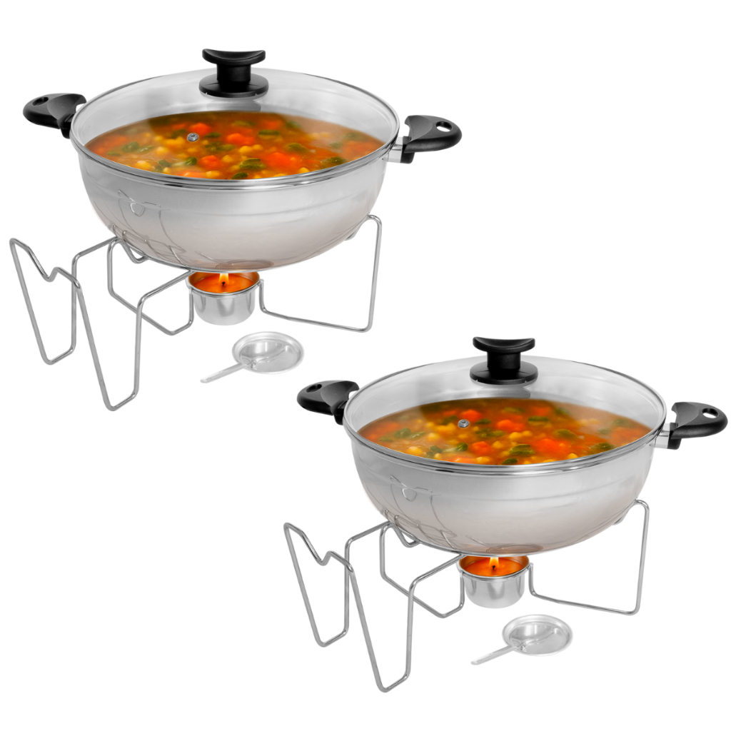 Jogo De Panela 2 Rechaud Redondo Tampa De Vidro Buffet Restaurante Cozinha