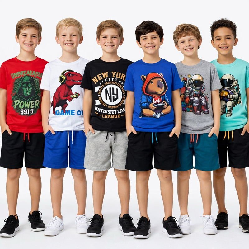👕🩳 KIT 12 Peças Sortidas = 6 Camisetas + 6 Bermudas Menino Verão Tamanho 2 ao 14 anos